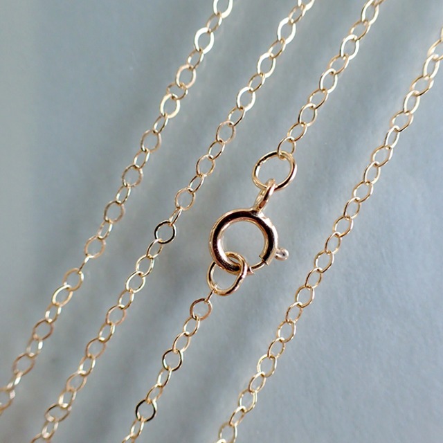 ご覧になってくださり、ありがとうございます。14金ゴールドフィルド製のシンプルなネックレスチェーンです。お好みのペンダントトップを通してお使い頂けます。 ※在庫状況により、ご注文を頂いてからお届けまでにお時間を頂く場合がございます。ご了承くださいませ。 ・素材は、14金ゴールドフィルドです。 ・このネックレスチェーンは、10g前後までのペンダントトップに適しています。 ※5枚目画像は長さ比較です。短い方が40㎝、長い方が50㎝です。 【14金ゴールドフィルドについて】 ・ゴールドフィルドは、14金の層を高熱と圧力で真鍮に圧着させたものです。金メッキよりはるかに厚い層で作られているため、長時間使用していても剥げてくることはほとんどありません。手軽に本物の金の輝きを楽しめます。 ・金属アレルギーが出にくいとされていますが、すべての方に出ないというわけではありませんので、予めご了承ください。万が一異常を感じられた場合は、すみやかにご使用をお止めください。 ・汗、皮脂、化粧水等が直接触れると変色の原因となります。ご使用後は清潔な乾いた布等で優しく拭き取ってくださいますと、長く美しい状態でお楽しみ頂けます。