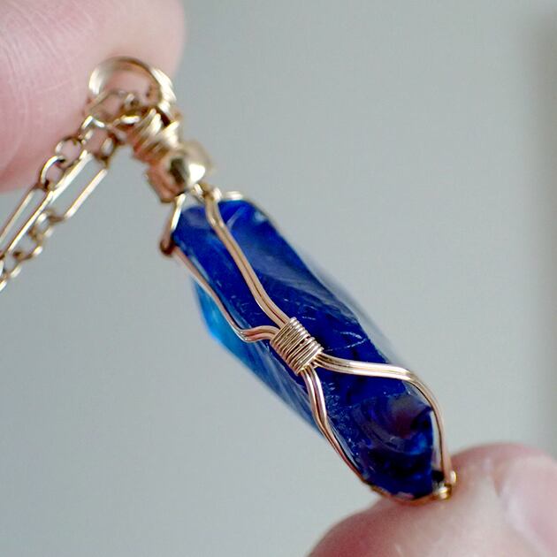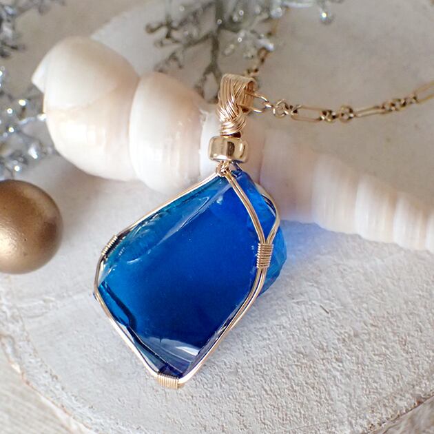 シエラネバダ産アンダラクリスタル、タンザナイト・ファイヤーの原石を女神巻き®ペンダントトップにお創りしました。