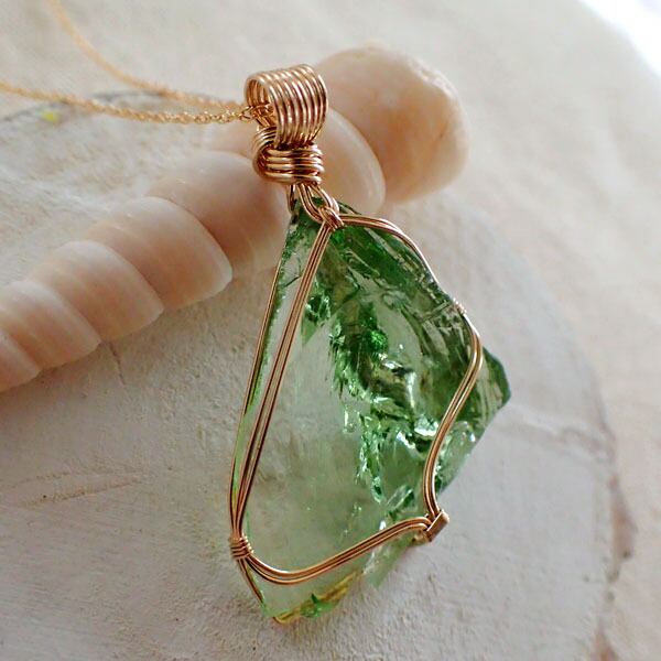 ご覧になってくださり、ありがとうございます。鮮やかなライトグリーンのアンダラクリスタルを、〈女神巻き®〉デザインでペンダントトップにしました。14金ゴールドフィルドワイヤーを使用しています。(※ネックレスチェーンは別売りです)