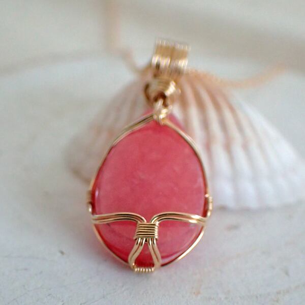 ご覧になってくださり、ありがとうございます。鮮やか、艶やかなロードクロサイト(インカローズ)を〈女神巻き®〉デザインでペンダントトップにしました。小さなサイズですが、最高級のクオリティです。14金ゴールドフィルドワイヤーを使用しています。(※ネックレスチェーンは別売りです)