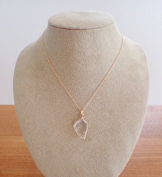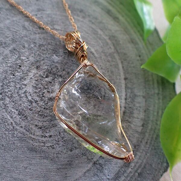 ご覧になってくださり、ありがとうございます。クリアカラーの小さなアンダラクリスタルを、〈女神巻き®〉デザインでペンダントトップにしました。薄くて繊細なアンダラクリスタルです。14金ゴールドフィルドワイヤーを使用しています。(※ネックレスチェーンは別売りです)