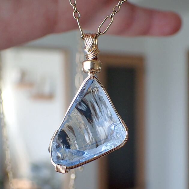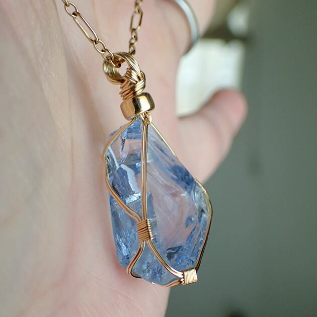 シエラネバダ産アンダラクリスタル、レディネリーの原石を女神巻き®ペンダントトップにお創りしました。