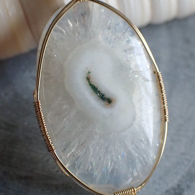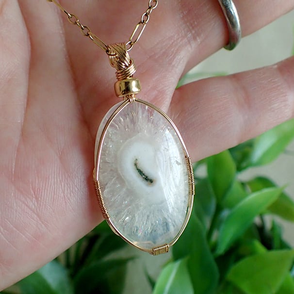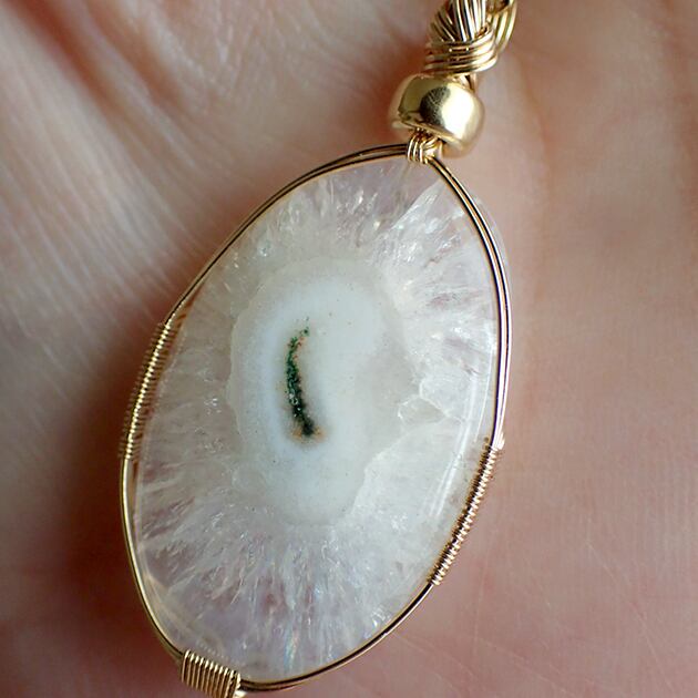 ソーラークォーツのカボションを女神巻き®ペンダントトップにお創りしました。