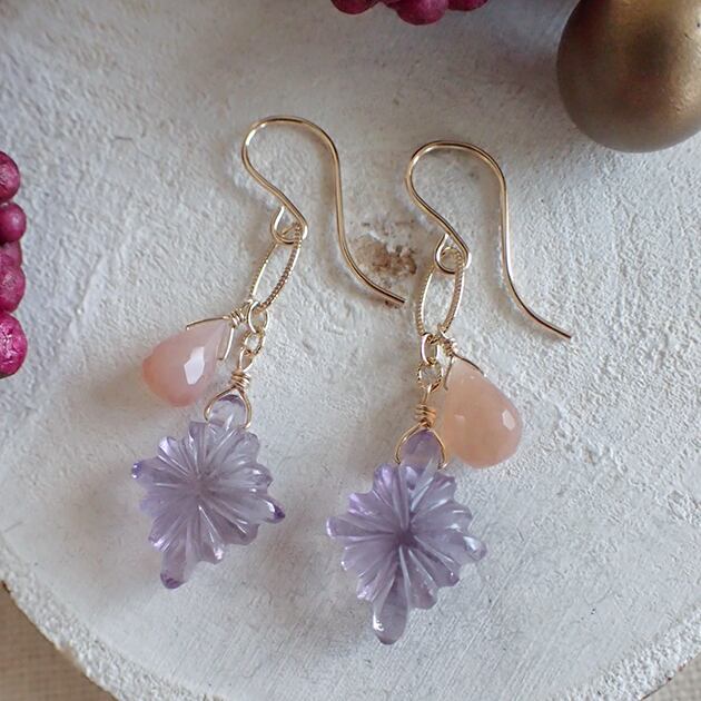【メッセージジュエリー】〈14kgf〉ローゼンジ・アメジストとピーチムーンストーンのピアス