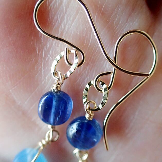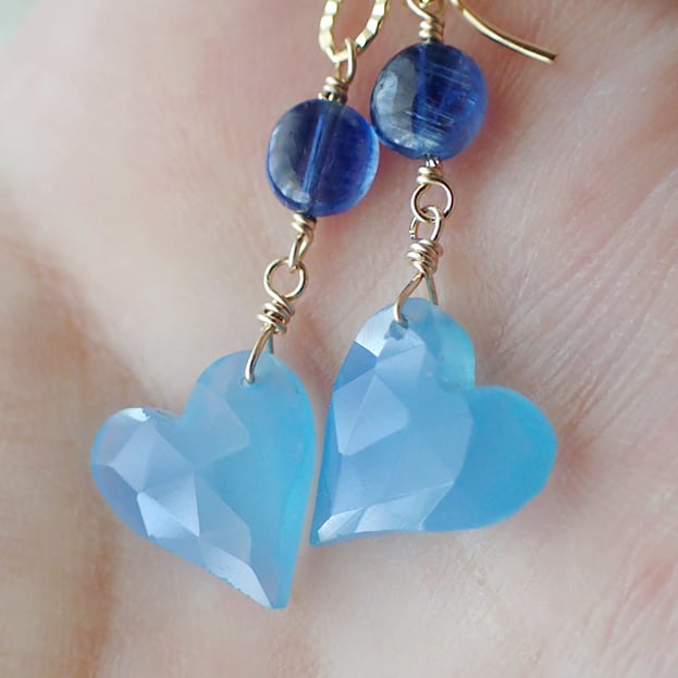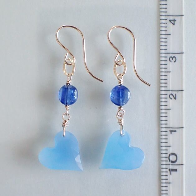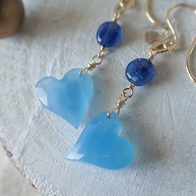 ハート型のブルーカルセドニーと、カイヤナイトをあわせて、ピアスをお創りしました。