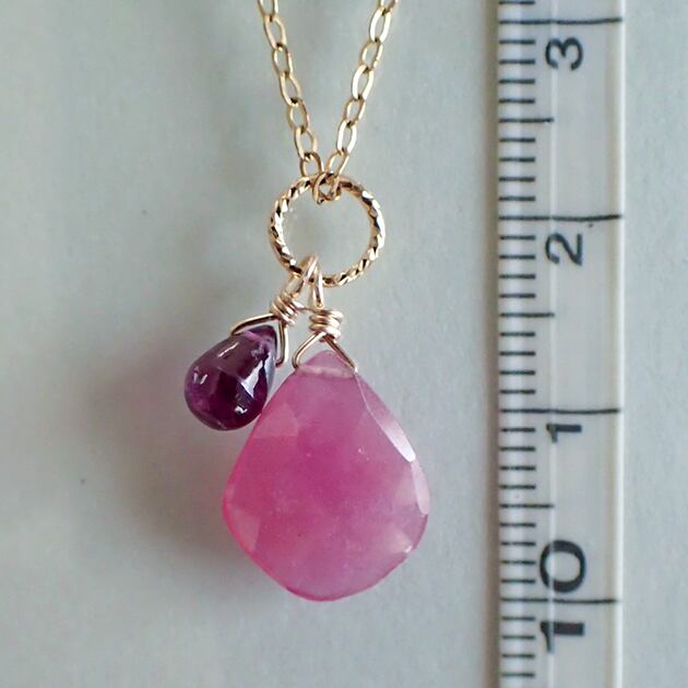 マダガスカル産のルビー(ピンクサファイヤ)と、ロードライトガーネットを組み合わせて、シンプルなチャームをお創りしました。