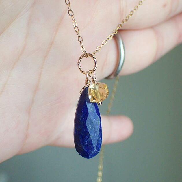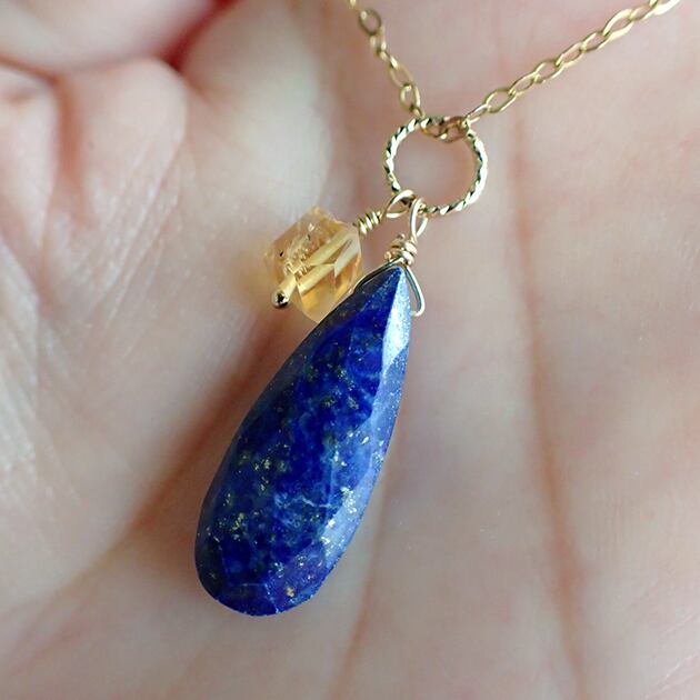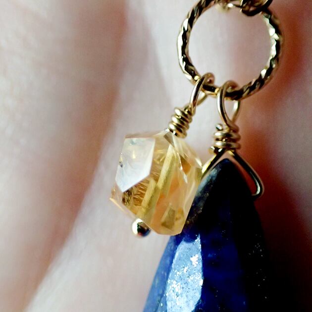 アフガニスタン産のラピスラズリと、宝石質のシトリンを組み合わせて、シンプルなチャームをお創りしました。