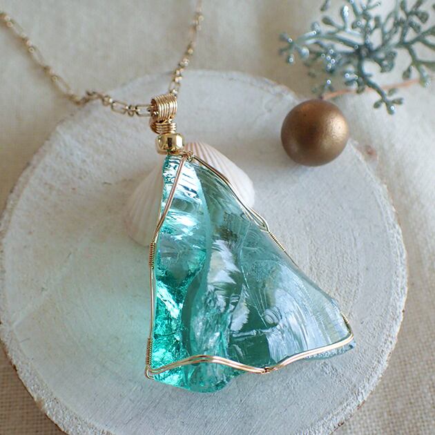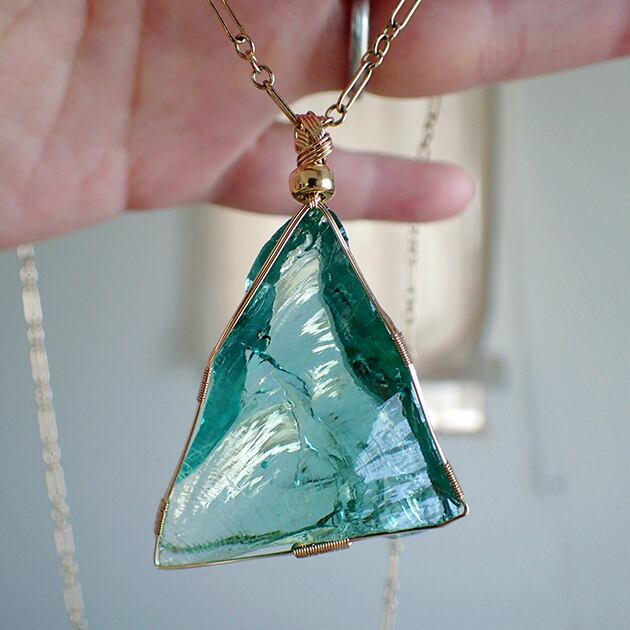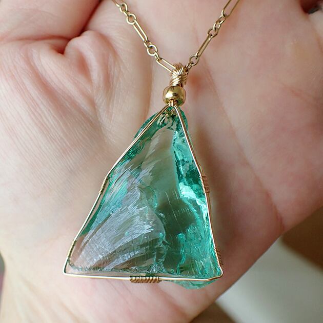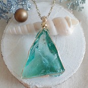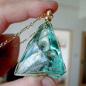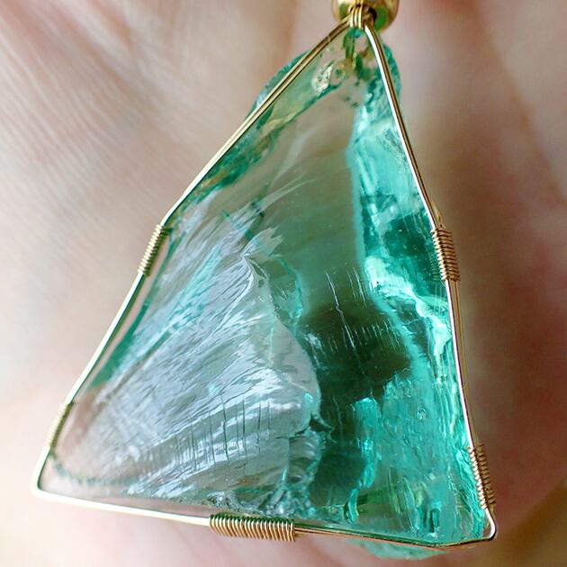 インドネシア産アンダラクリスタル、ミントグリーンの原石を女神巻き®ペンダントトップにお創りしました。10g越えの、ボリュームたっぷりなジュエリーです。