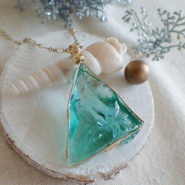 爽やかなミントグリーンのアンダラで、自然に割れた三角形のフォルムもとても洗練された印象です。