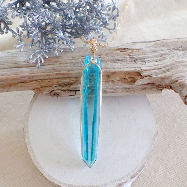 〈女神巻き®〉ポイント型アクアオーラのペンダントトップ