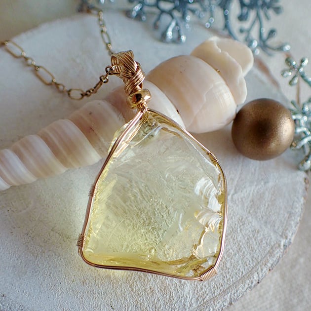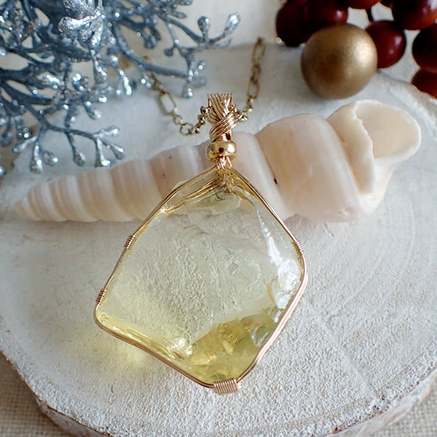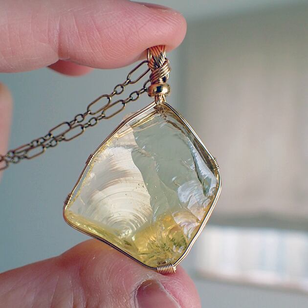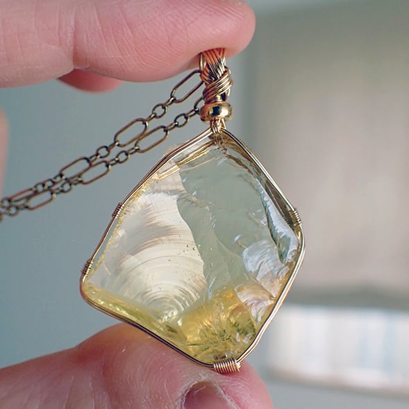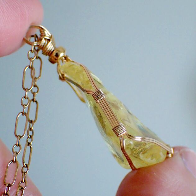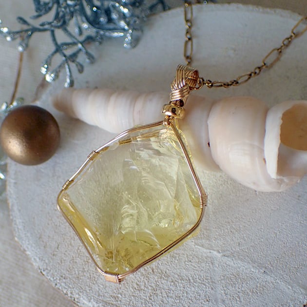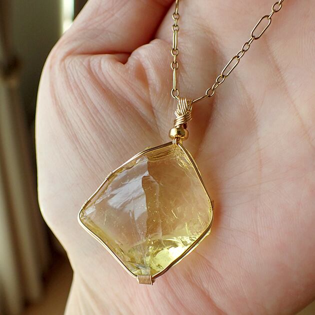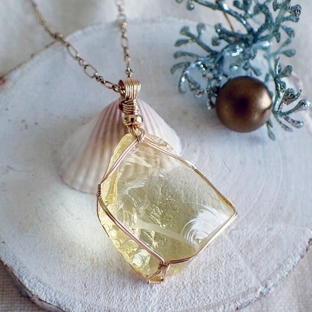 シエラネバダ産アンダラクリスタル、ソラリスの原石を女神巻き®ペンダントトップにお創りしました。