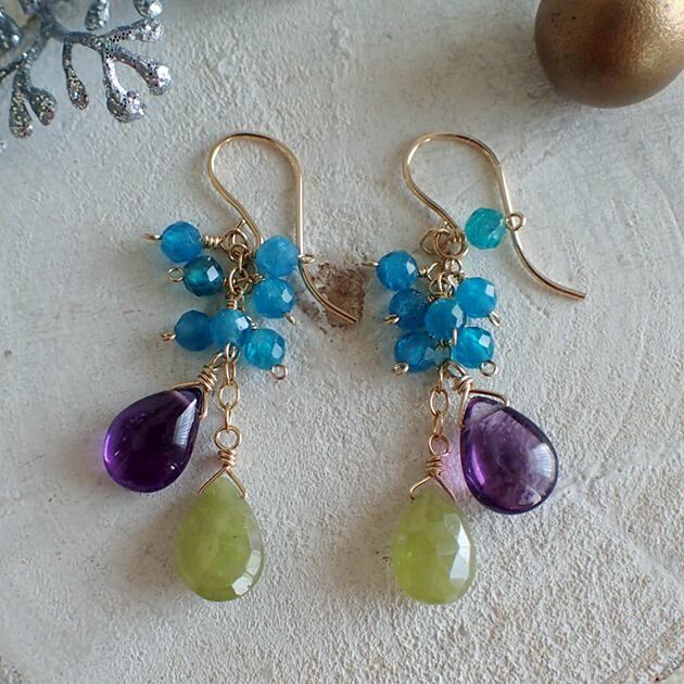・ピアス金具、ワイヤー素材等は、すべて14金ゴールドフィルドです。