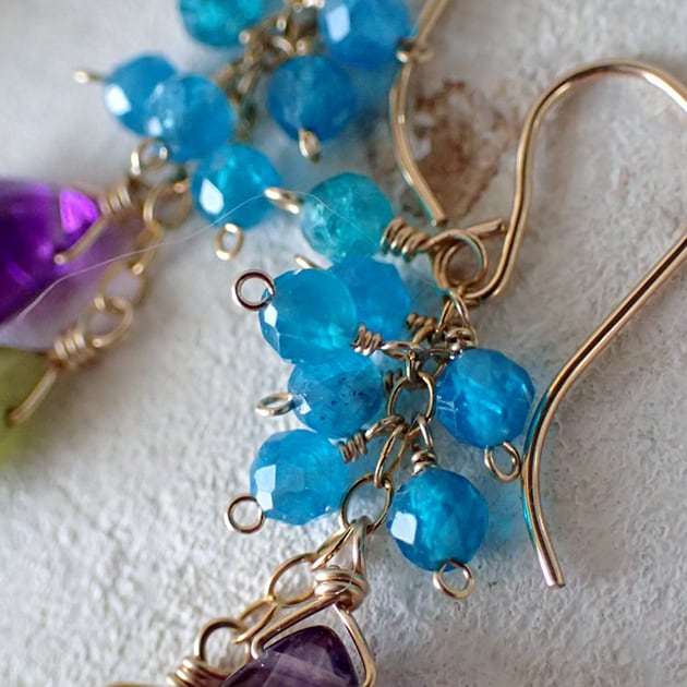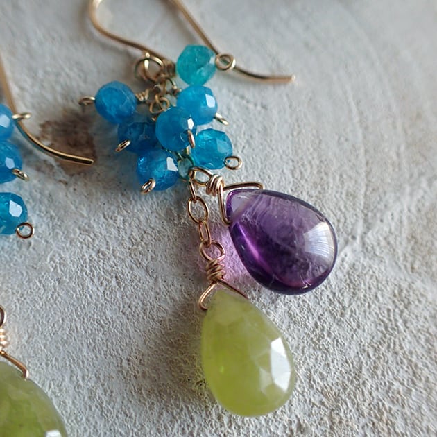 スフェーン、アメジスト、小粒のブルーアパタイトは、すべて鮮やかなクリスタル同士ですが、その魅力が余すところなく絶妙に調和しているように感じます。