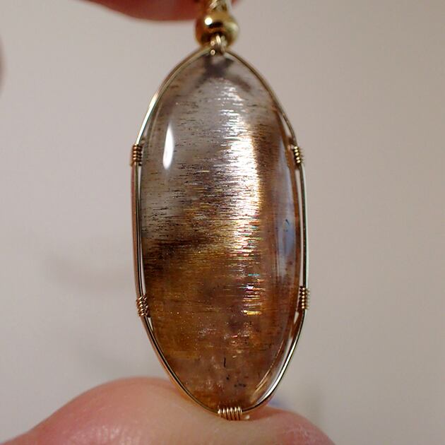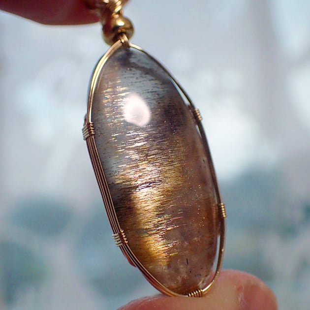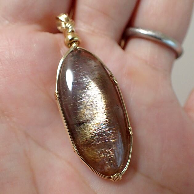 ゴールデンサンストーンのカボションを女神巻き®ペンダントトップにお創りしました。