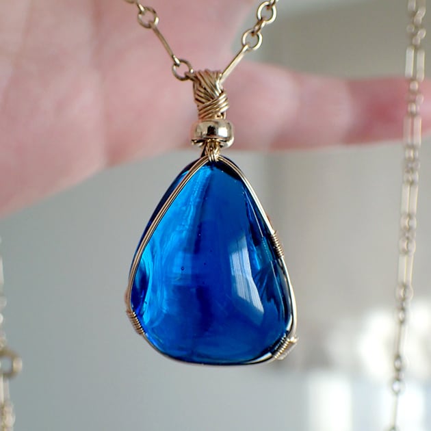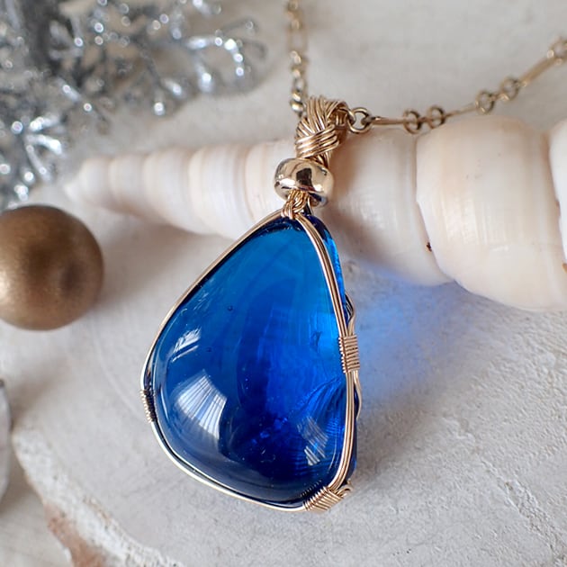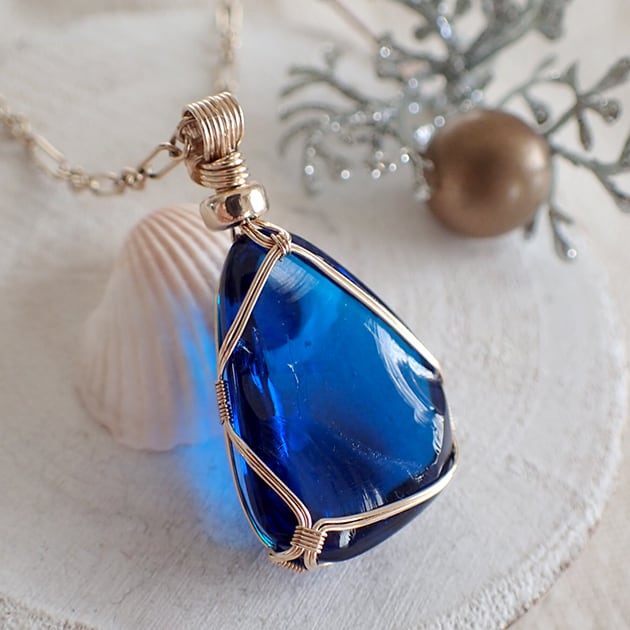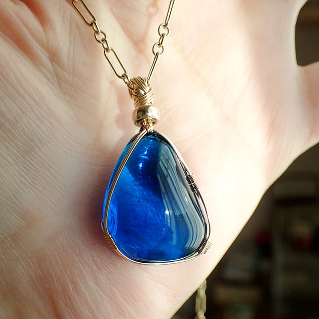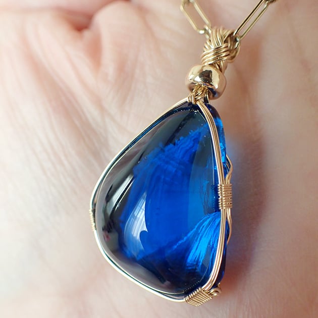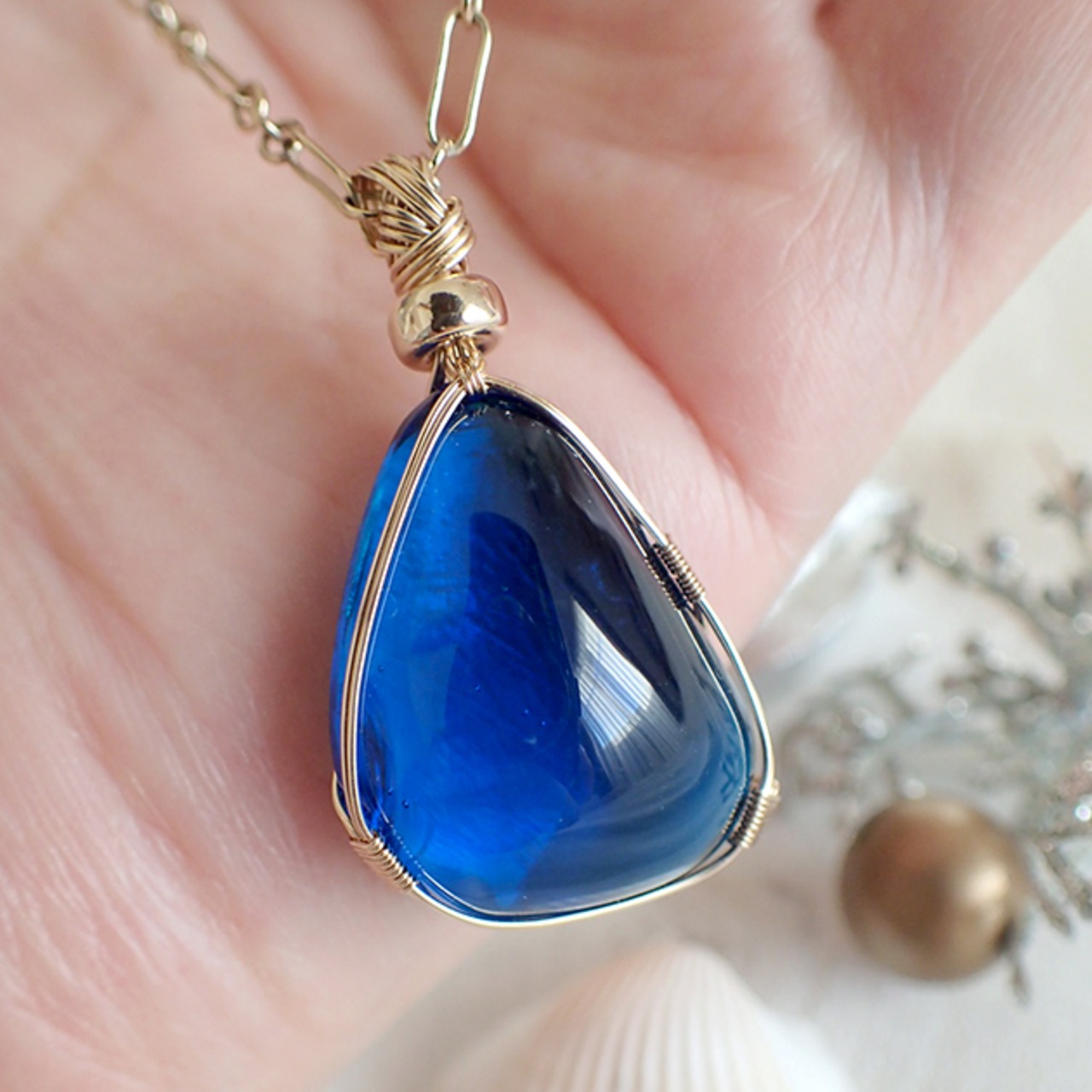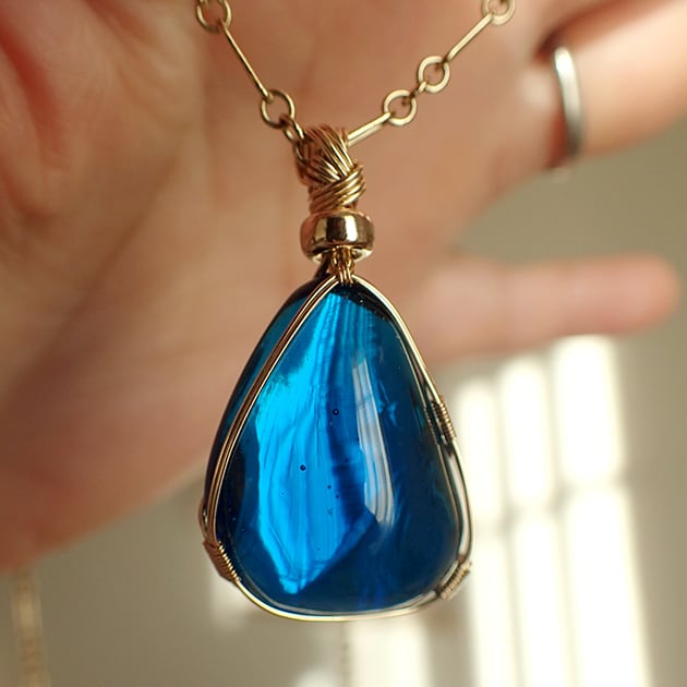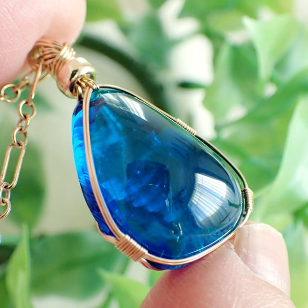 シエラネバダ産アンダラクリスタル、タンザナイトファイヤーのカボションを女神巻き®ペンダントトップにお創りしました。