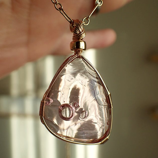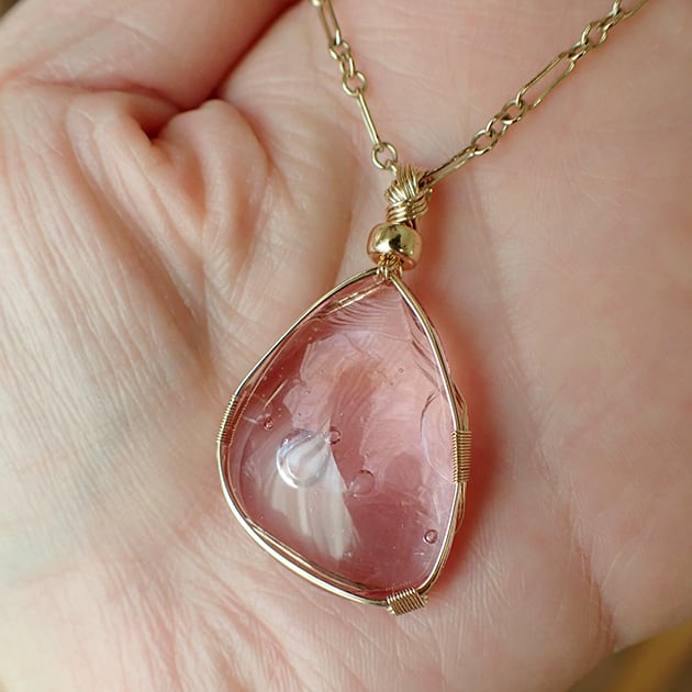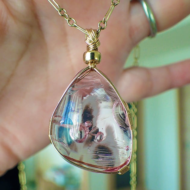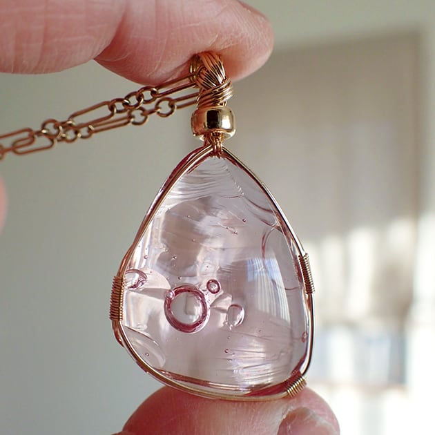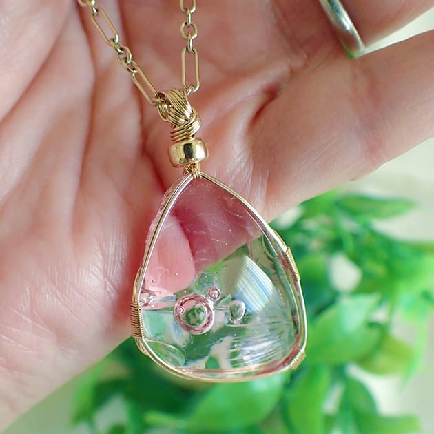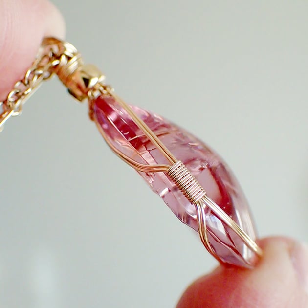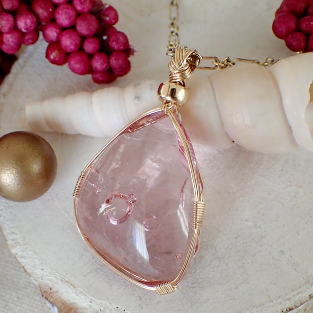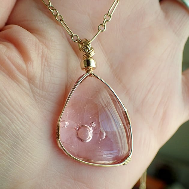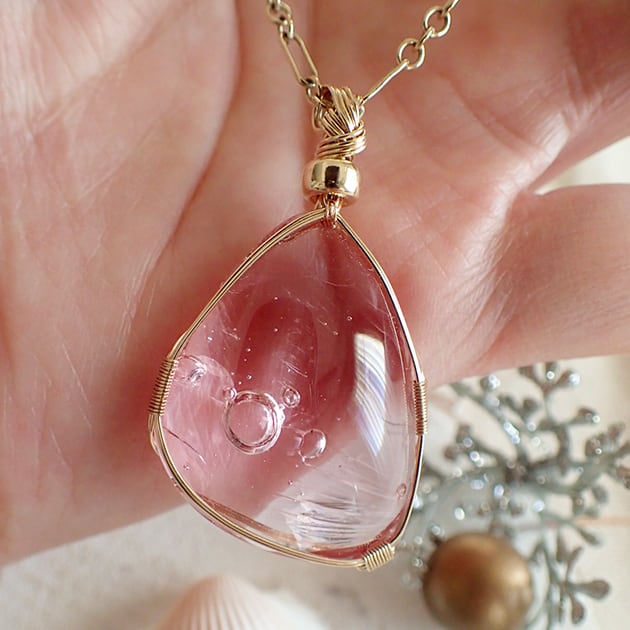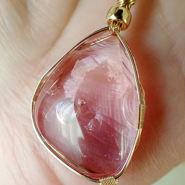 シエラネバダ産アンダラクリスタル、HGWピンクのカボションを女神巻き®ペンダントトップにお創りしました。