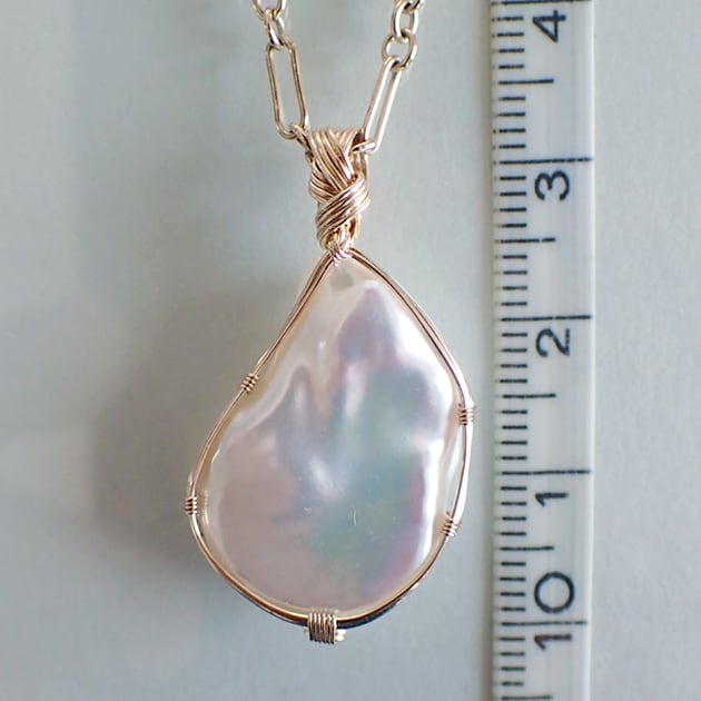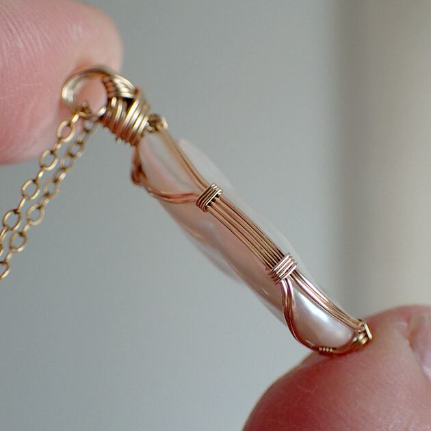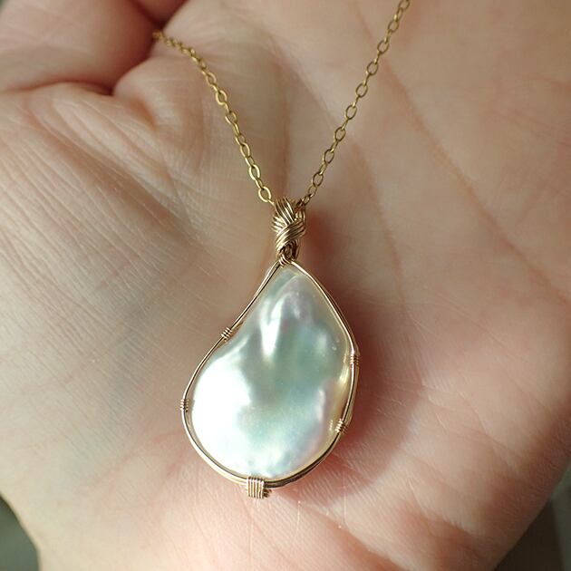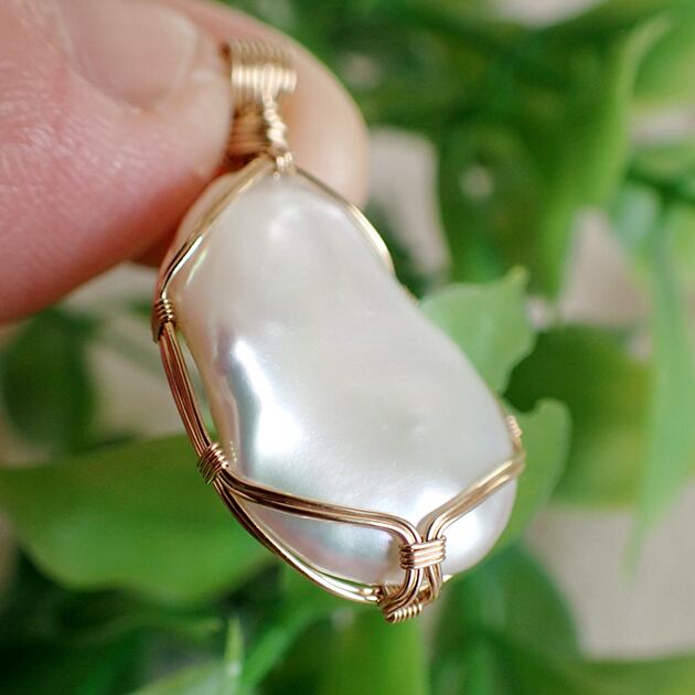 まが玉のようなフォルムのバロックパールを女神巻き®ペンダントトップにお創りしました。