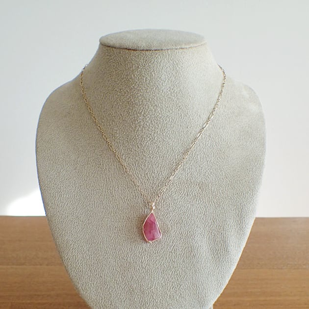 ・26ゲージ(太さ0.4mm)の14金ゴールドフィルドワイヤーを使用しています。やわらかく繊細な素材ですので、硬い物にぶつけたり、落としたりしないでください。破損の原因となります。