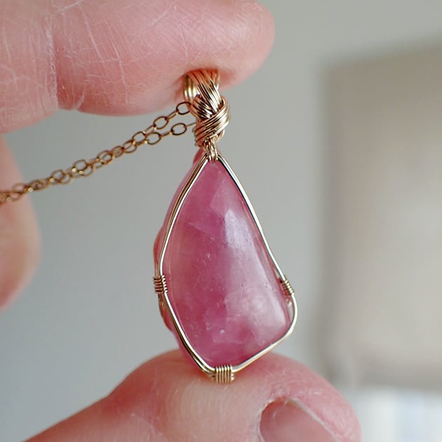 少しシアー感のあるモロッコ産のコバルトカルサイトを女神巻き®ペンダントトップにお創りしました。