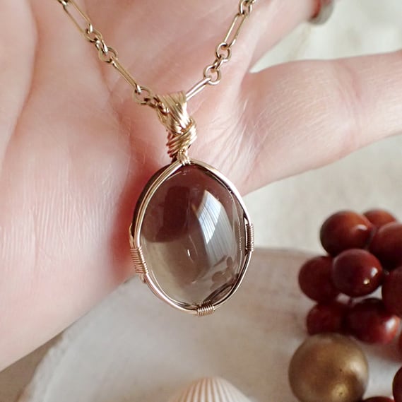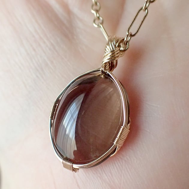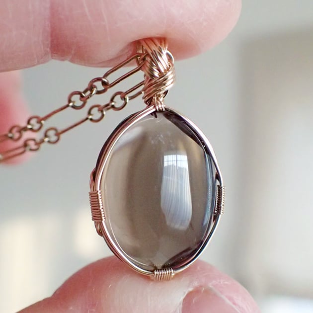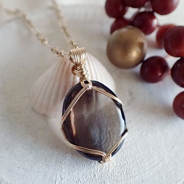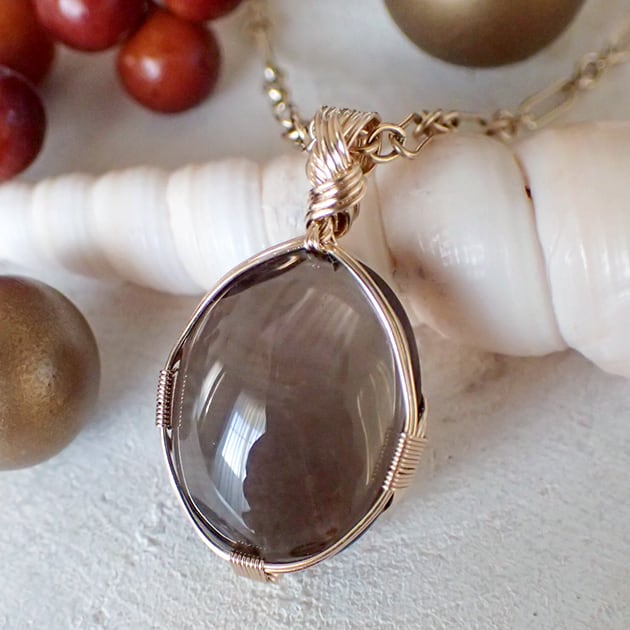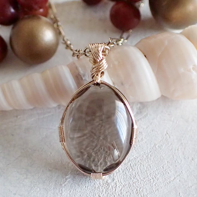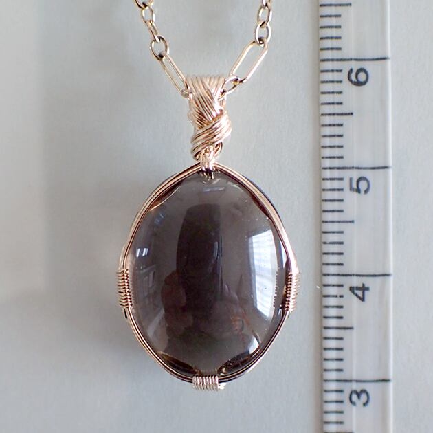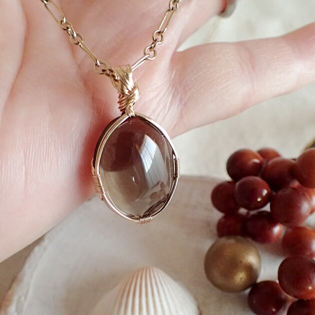 オーバル型スモーキークォーツのカボションを女神巻き®ペンダントトップにお創りしました。