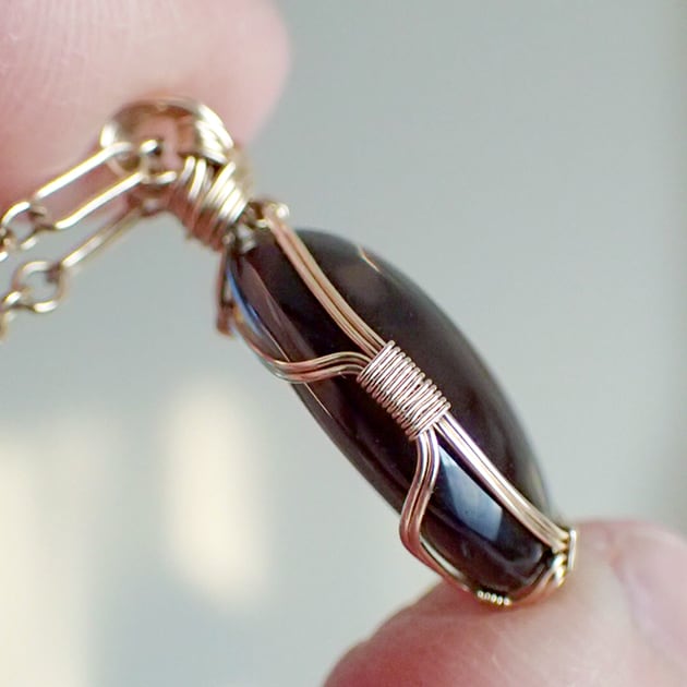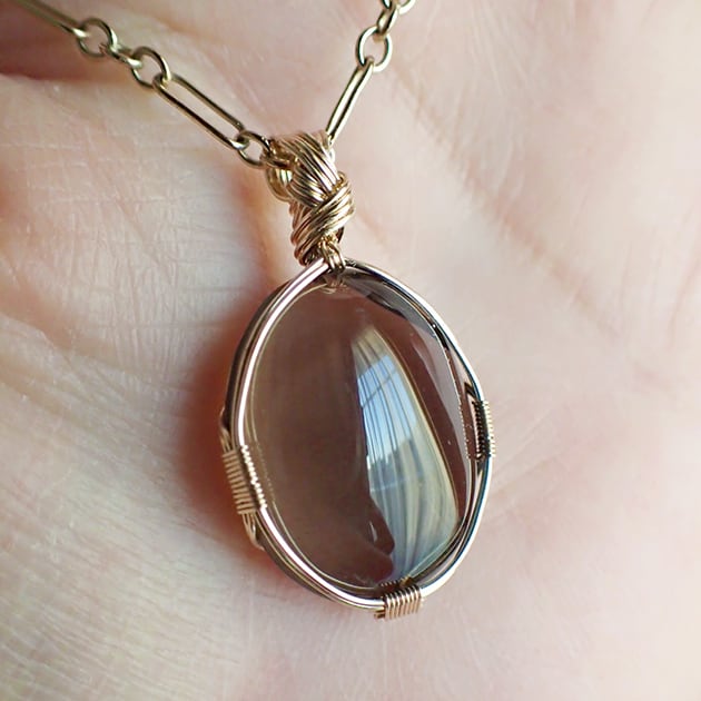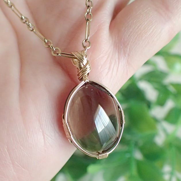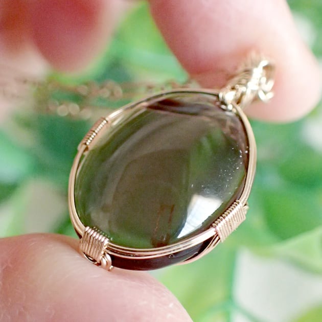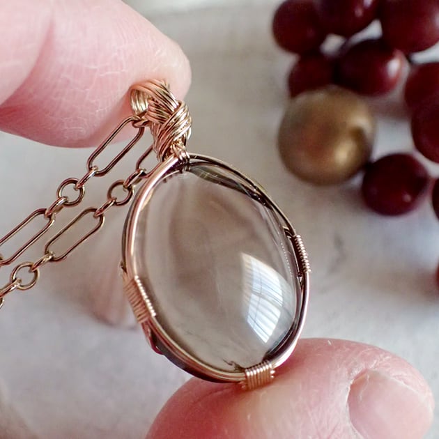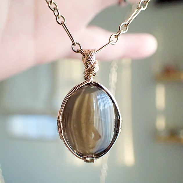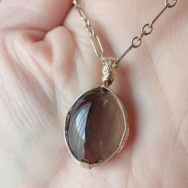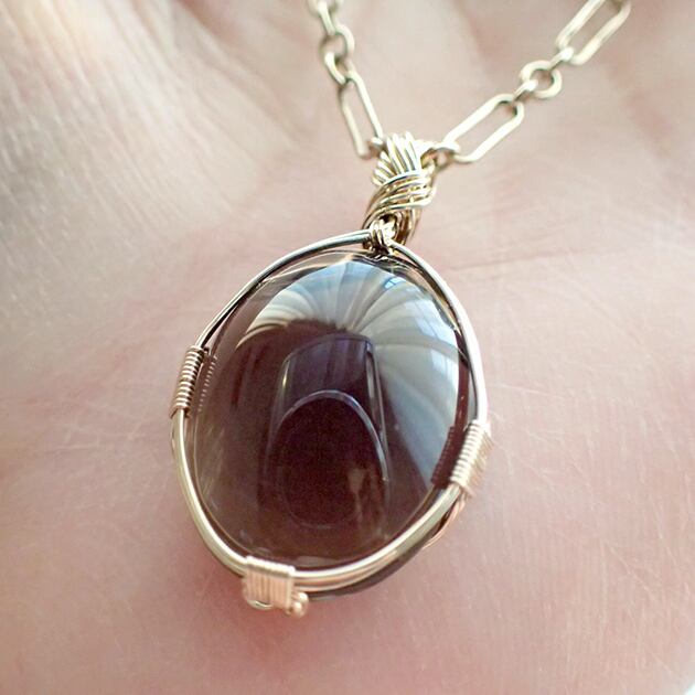 オーバル型スモーキークォーツのカボションを女神巻き®ペンダントトップにお創りしました。