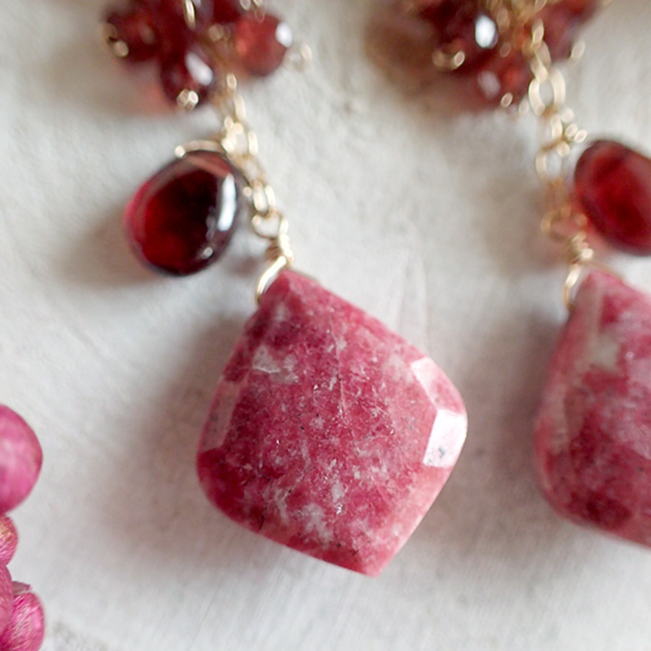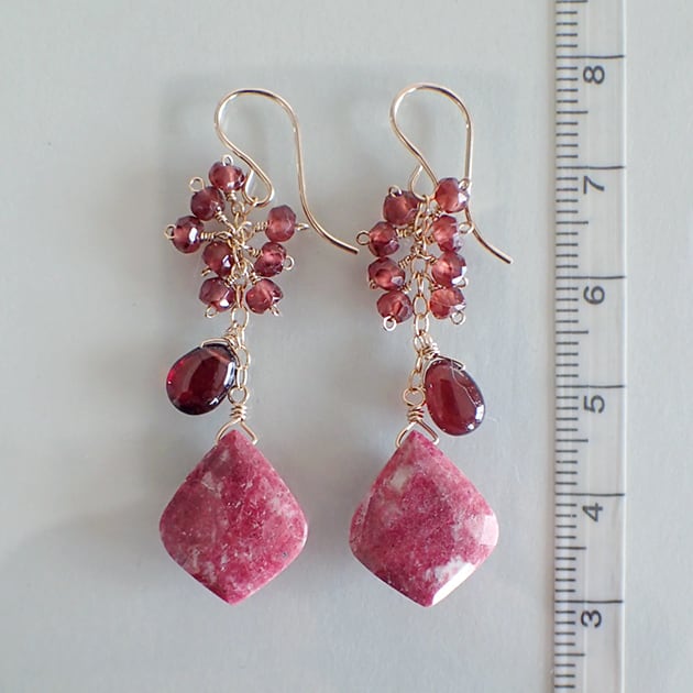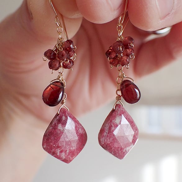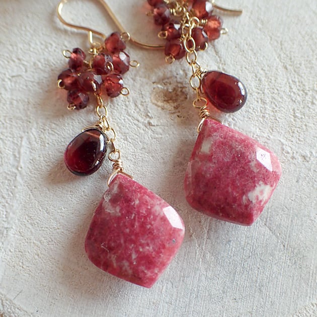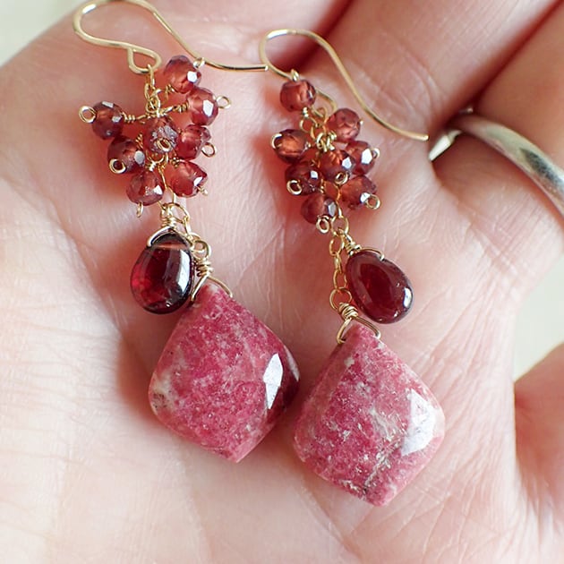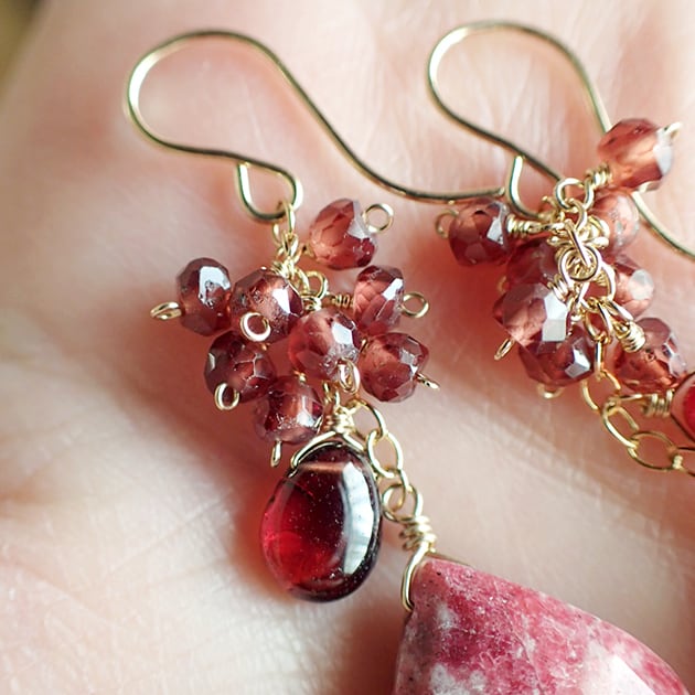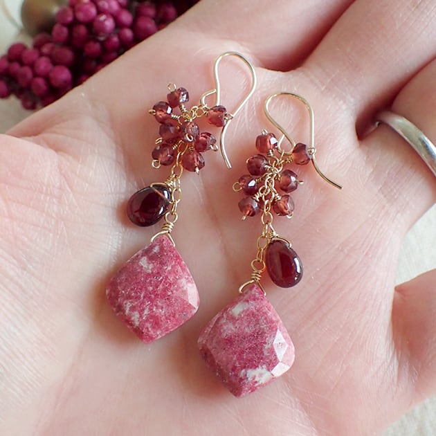 個性的な魅力を持つリーフ型のチューライトに、ガーネットを合わせて、ピアスをお創りしました。