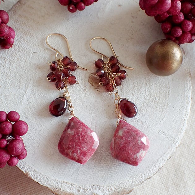 【メッセージジュエリー】〈14kgf〉チューライトとガーネットのピアス