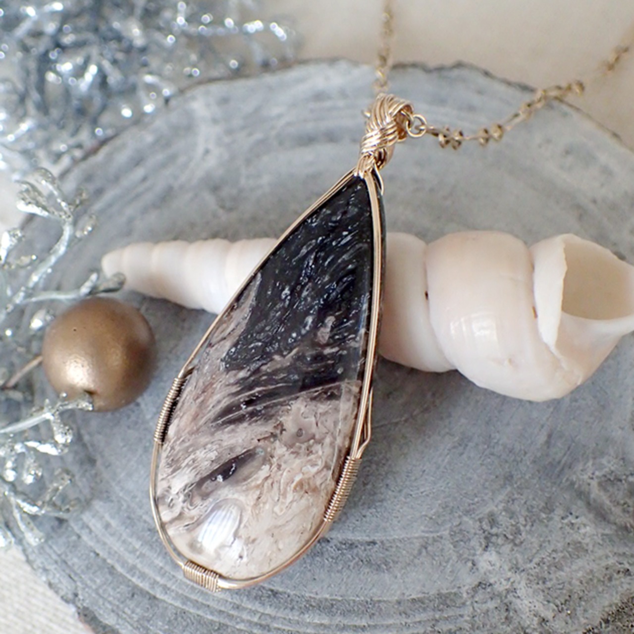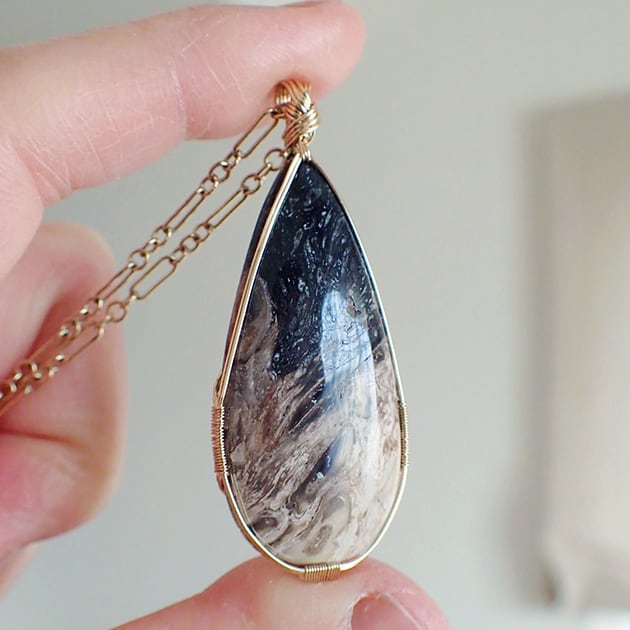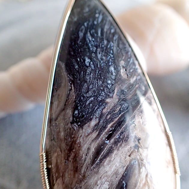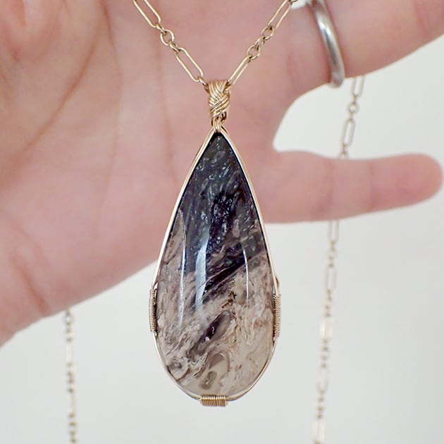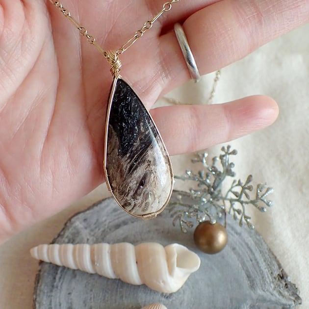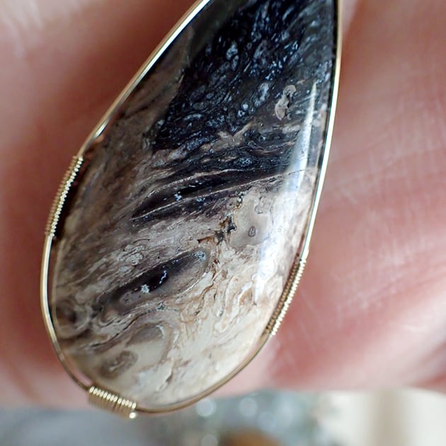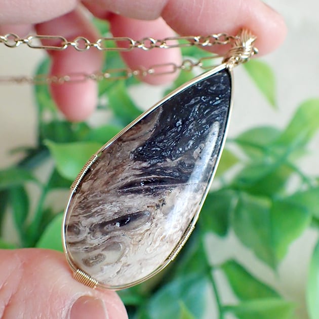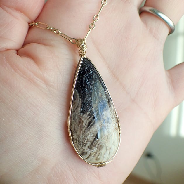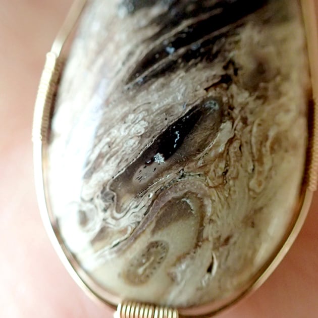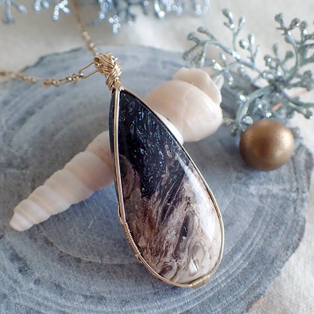 宇宙のような大粒のペトリファイドウッドを女神巻き®ペンダントトップにお創りしました。