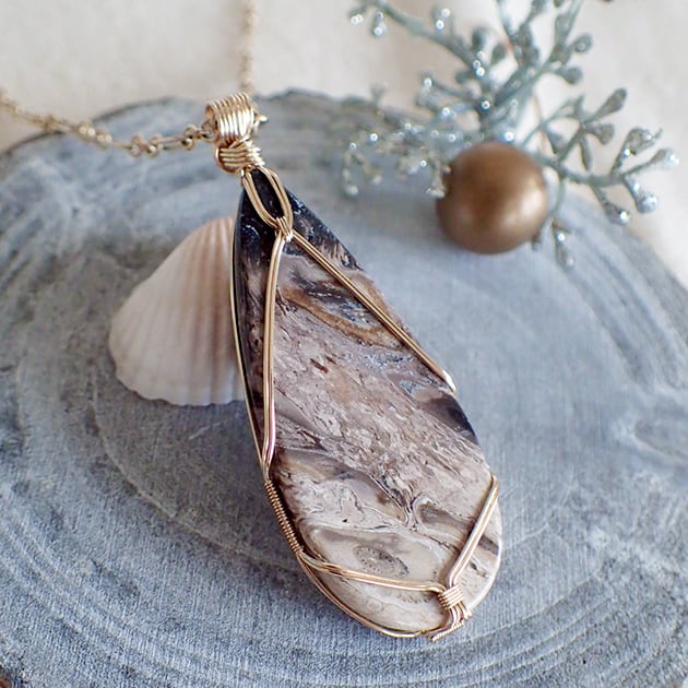 【メッセージジュエリー】〈女神巻き®〉ペトリファイドウッドのペンダントトップ