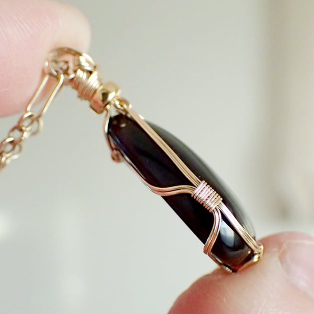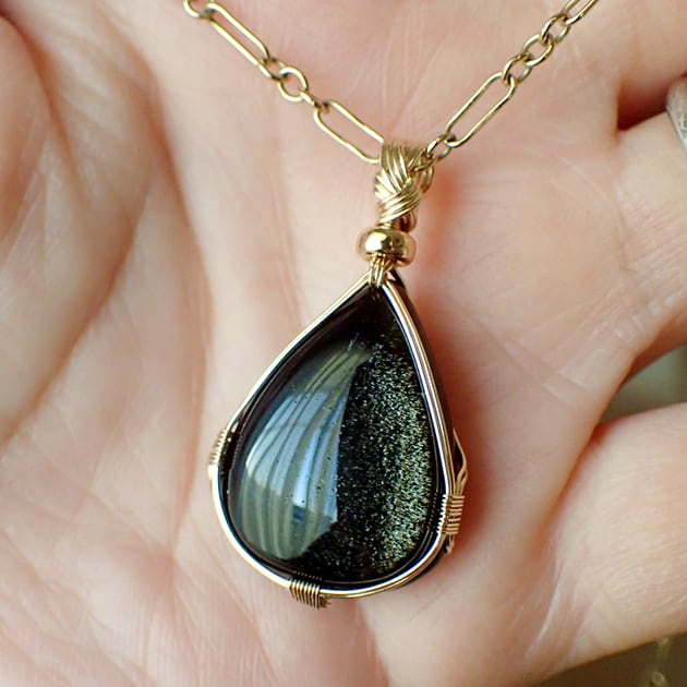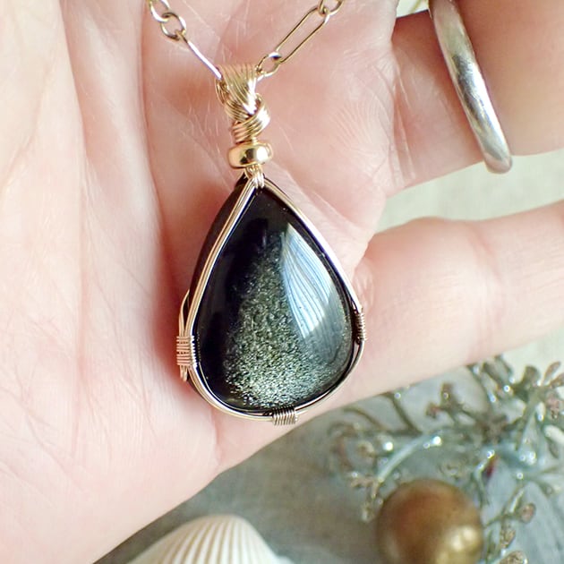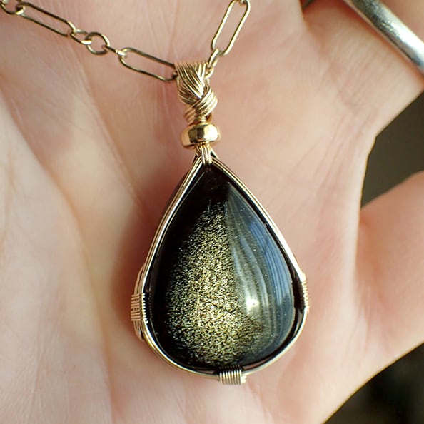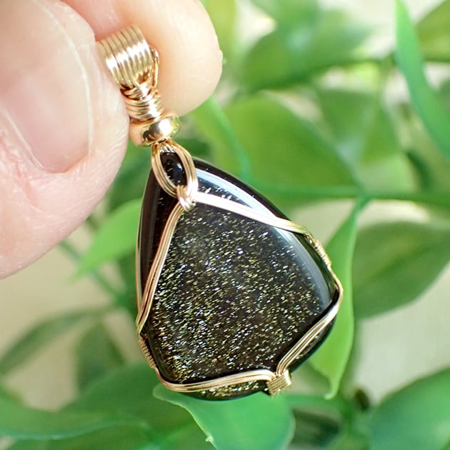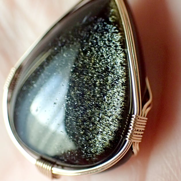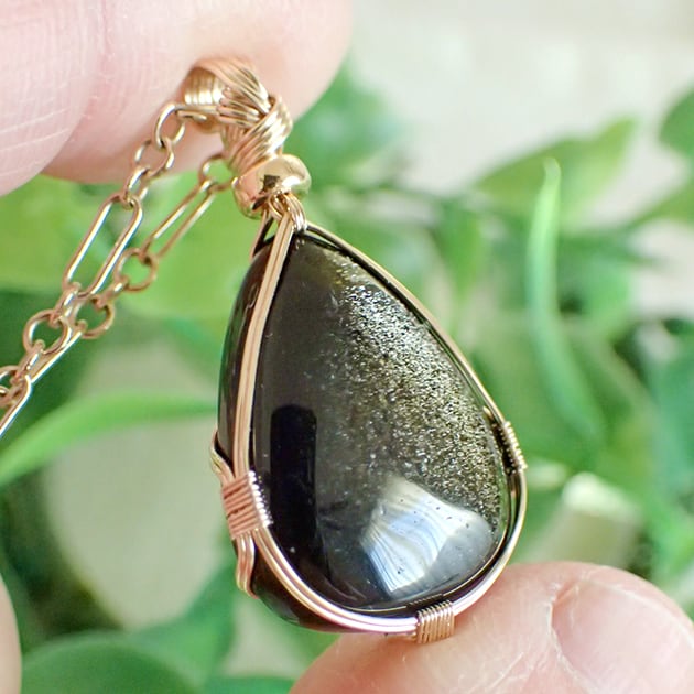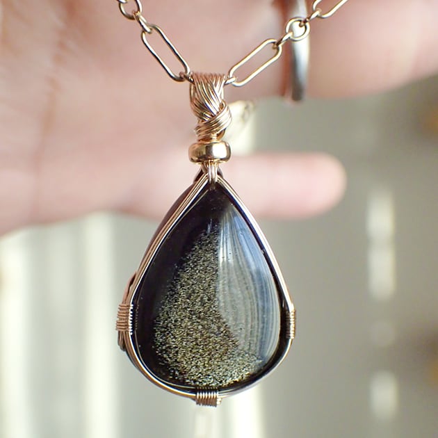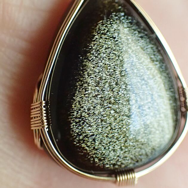 ゴールデンオブシディアンのカボションを女神巻き®ペンダントトップにお創りしました。