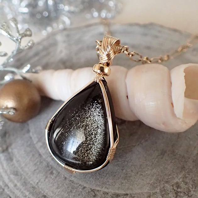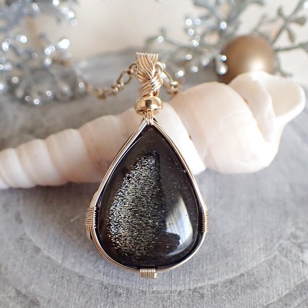 【メッセージジュエリー】〈女神巻き®〉ゴールデンオブシディアンのペンダントトップ