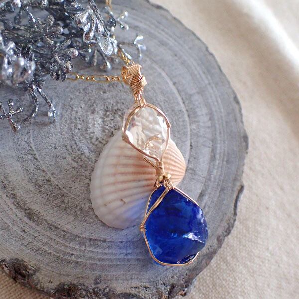 〈女神巻き®〉『出逢い』アンダラクリスタル(ブルー)のツイン・ペンダントトップ
