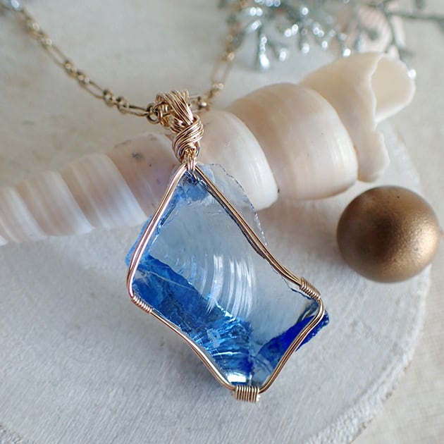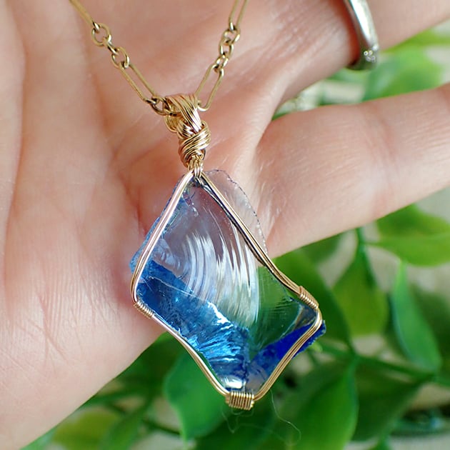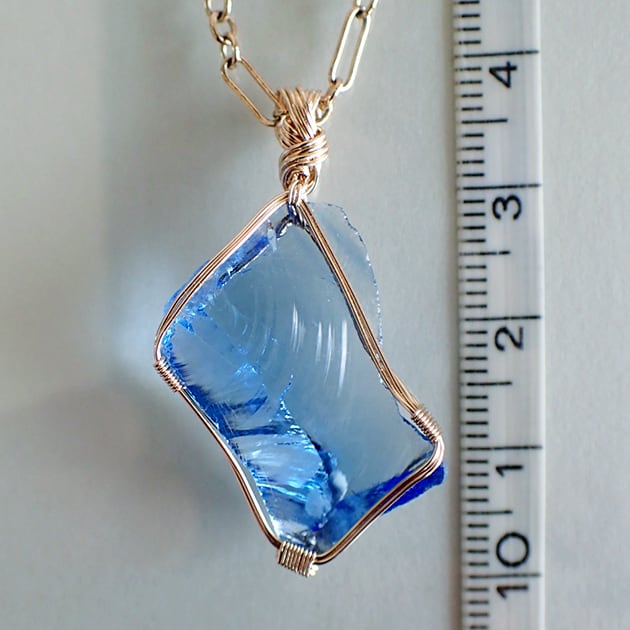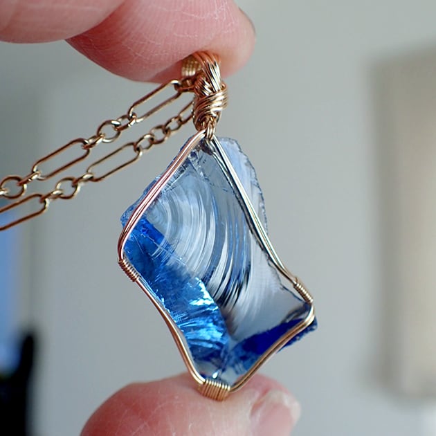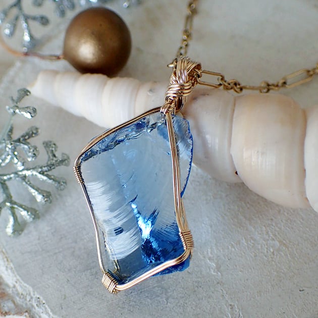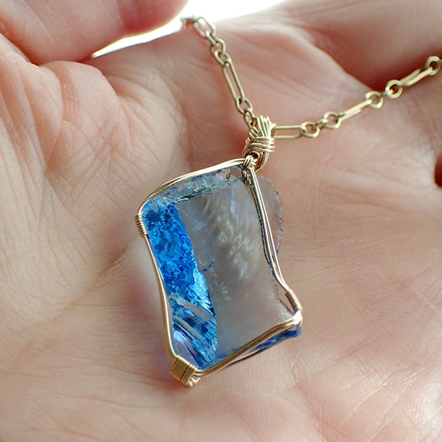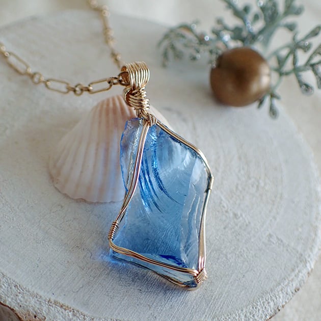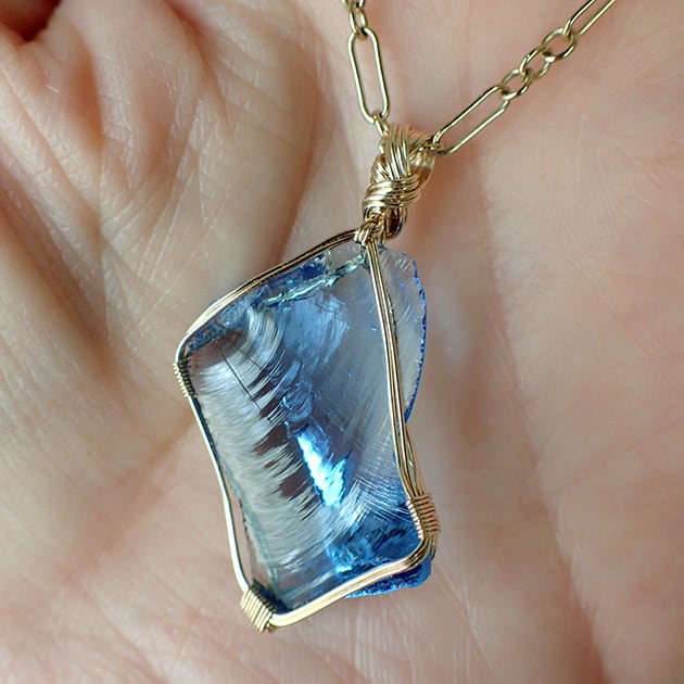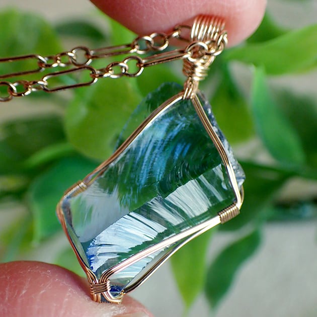シエラネバダ産アンダラクリスタル、タンザナイトファイヤーの小さな原石を女神巻き®ペンダントトップにお創りしました。