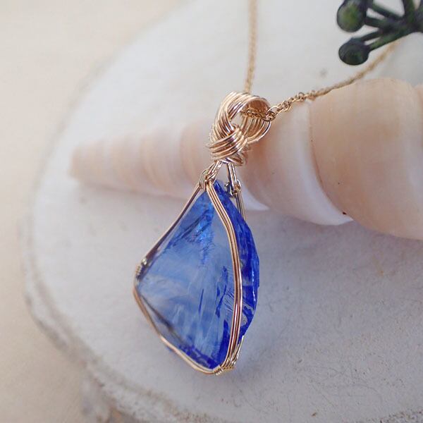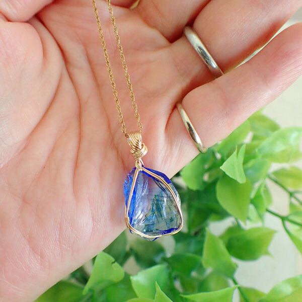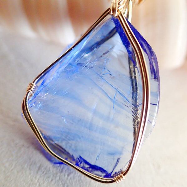 ご覧になってくださり、ありがとうございます。小指の先ほどの小さな小さなアンダラクリスタルを、〈女神巻き®〉デザインでペンダントトップにしました。小さくても、ブルーとクリアのバイカラーが綺麗に入っています。まるで静かな海に寄せる波のよう。14金ゴールドフィルドワイヤーを使用しています。(※ネックレスチェーンは別売りです)
