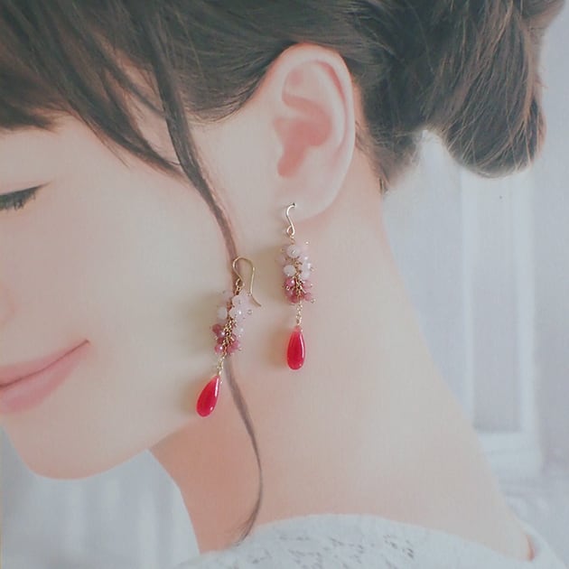 ※イヤリングへの変更も無料です。ご希望の場合は、一番下にある商品オプションをプルダウンして、「イヤリングに変更」を選んでください。(イヤリング金具はメッキ素材です)