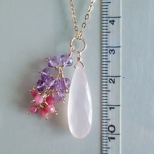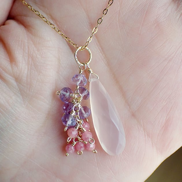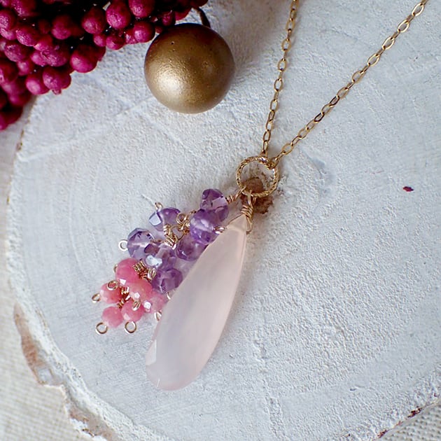 【メッセージジュエリー】〈14kgf〉ピンクカルセドニーと小粒石のチャーム