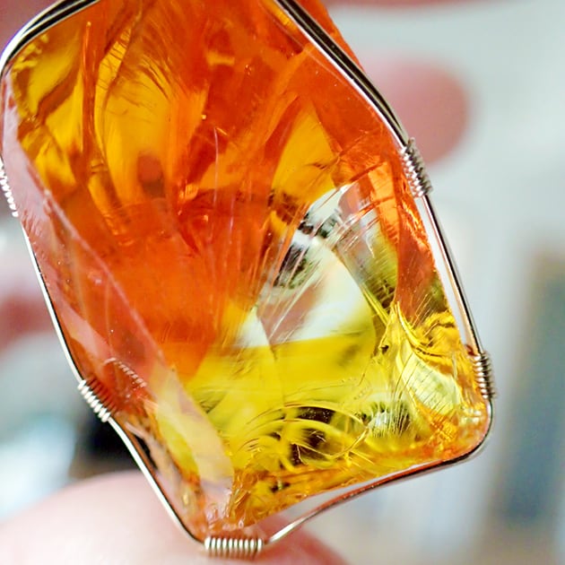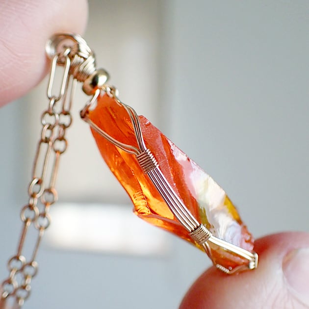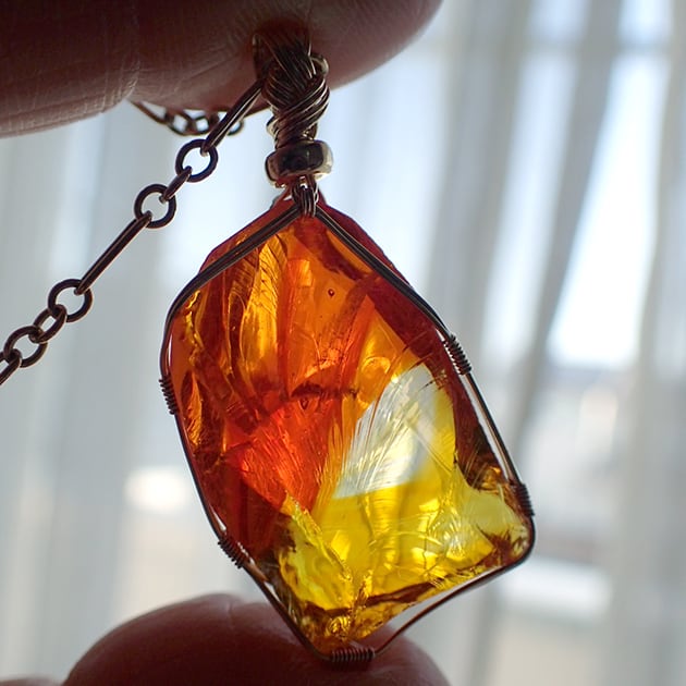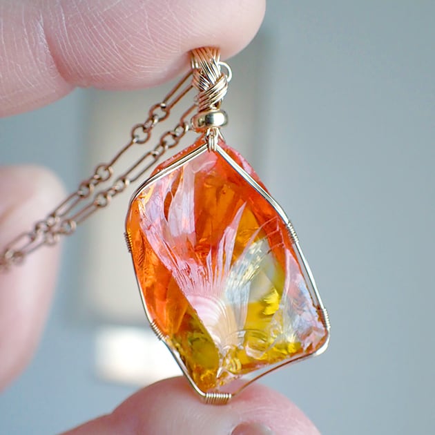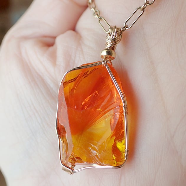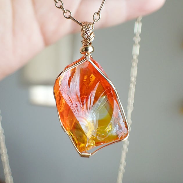 シエラネバダ産アンダラクリスタル、ファイヤーオパールの原石を女神巻き®ペンダントトップにお創りしました。