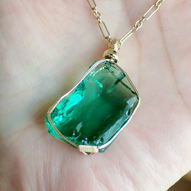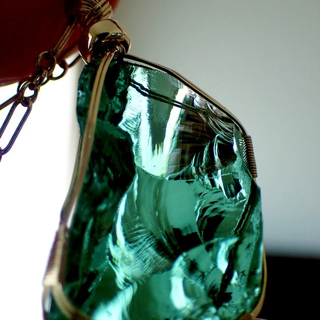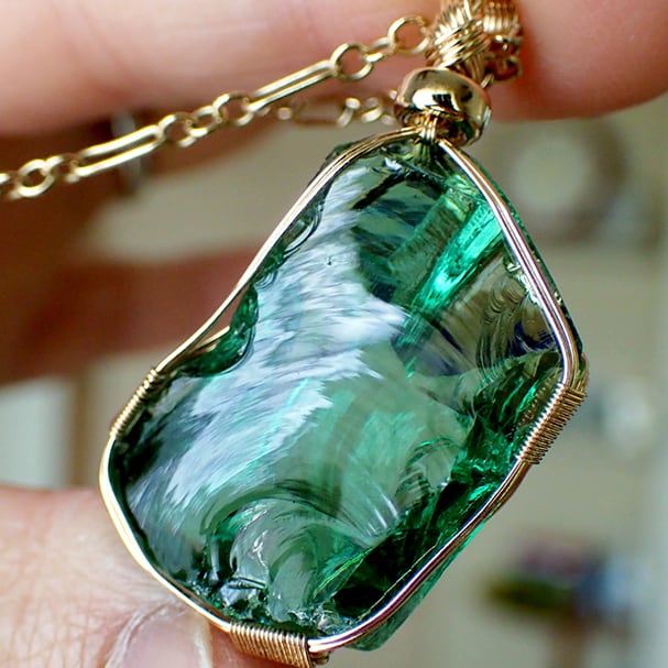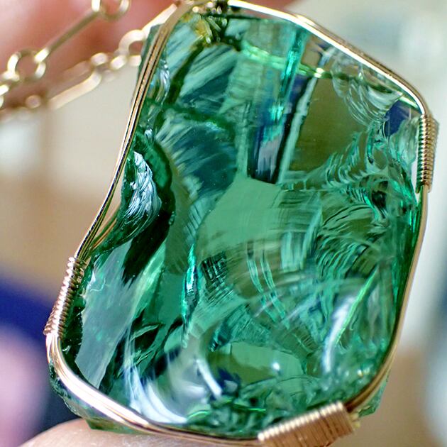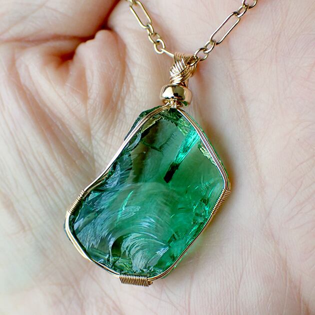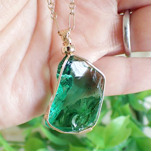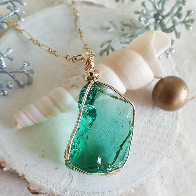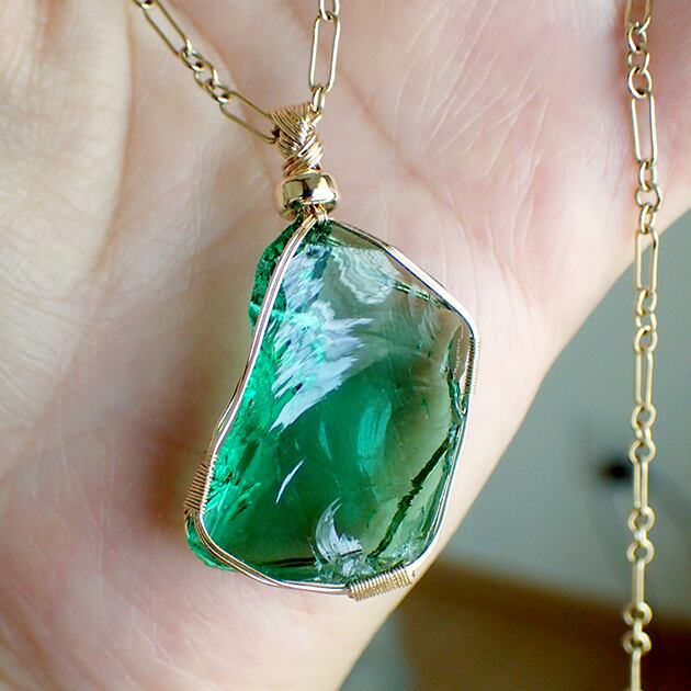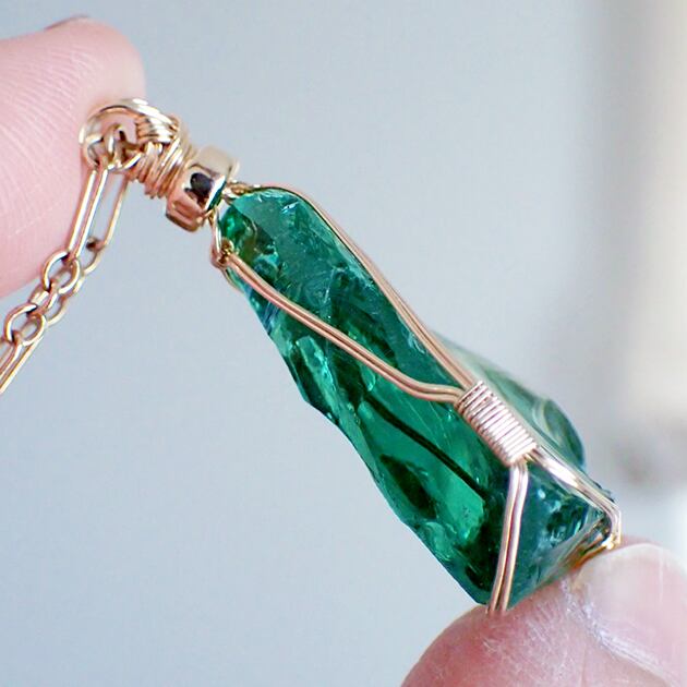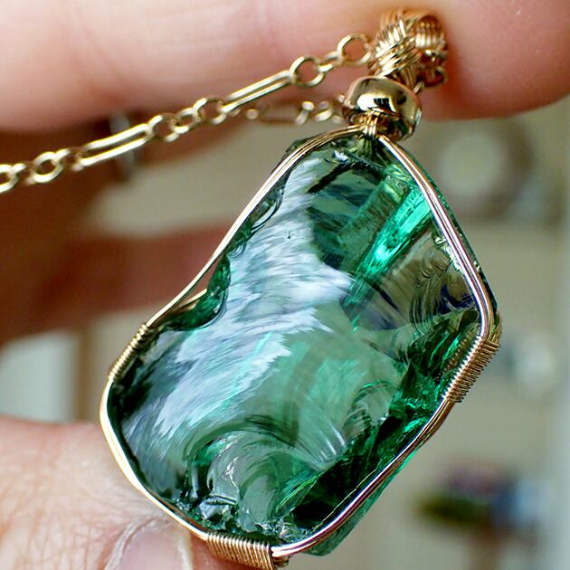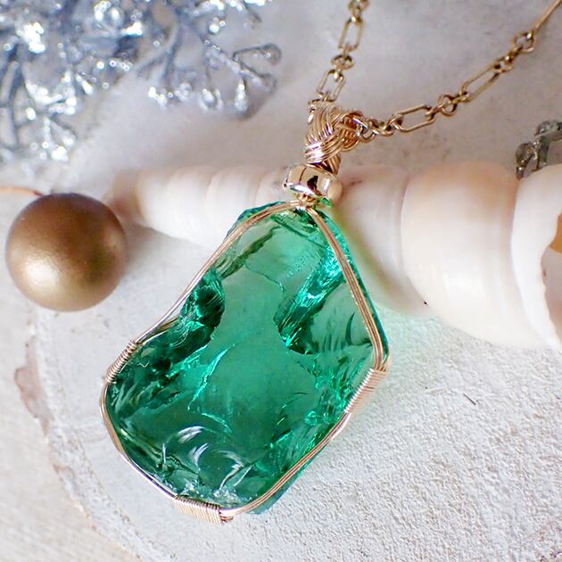 シエラネバダ産アンダラクリスタル、エメラルドシフトの原石を女神巻き®ペンダントトップにお創りしました。