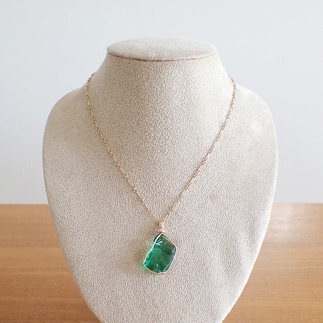 ・割れたままの原石です。身に着けた際に肌を傷つけないよう、裏面とオモテ面の鋭利な箇所を一部、金やすりで削ぎ落しています。