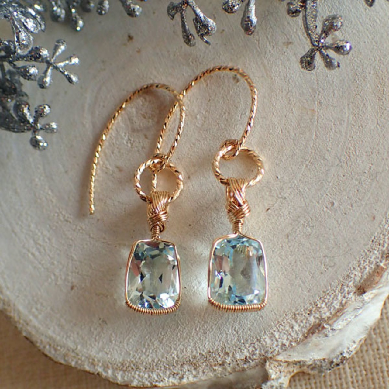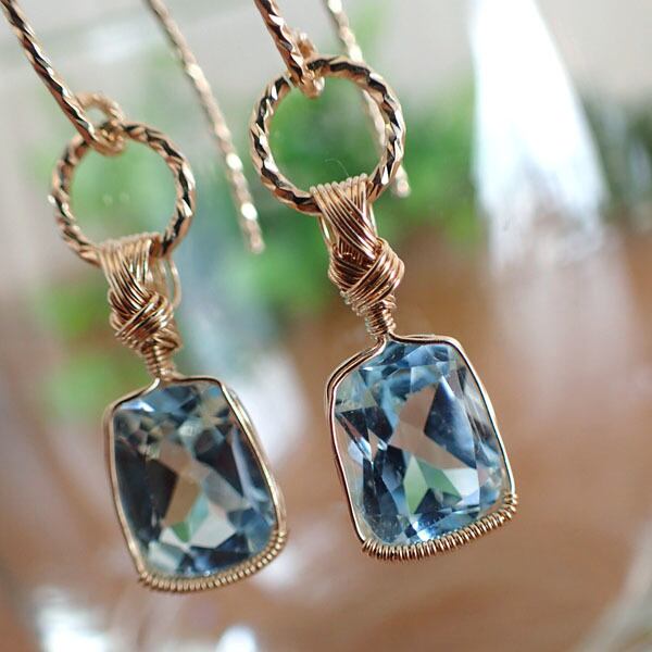 ご覧になってくださり、ありがとうございます。四角いファセットカットのブルートパーズを〈女神巻き®〉デザインで一粒石のピアスにしました。ピアスフックとフープはキラキラのスパークル仕様です。シンプルでありながら、特別感のあるデザインです。14金ゴールドフィルドワイヤーを使用しています。(※イヤリングへの変更は無料です)
