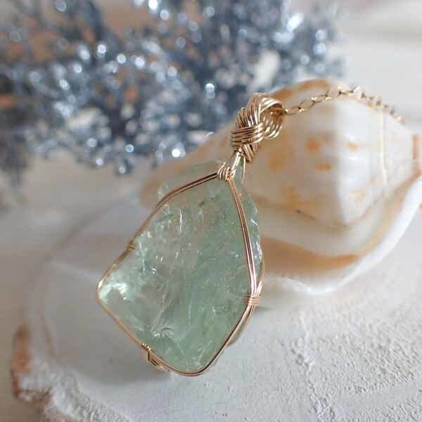 ご覧になってくださり、ありがとうございます。小さなアンダラクリスタルを、〈女神巻き®〉デザインでペンダントトップにしました。朝一番の清々しさを思わせるようなミントグリーンです。クリスタルの内側は複雑に割れ模様が重なっており、虹が見えます。光に透かして眺めるのも美しい、小さな宝物のようなクリスタルです。14金ゴールドフィルドワイヤーを使用しています。(※ネックレスチェーンは別売りです)