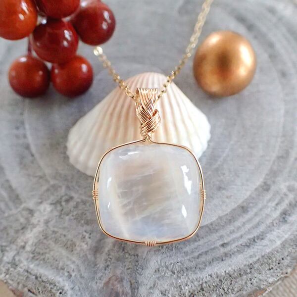 【期間限定特価】〈女神巻き®〉角丸ムーンストーンのペンダントトップ