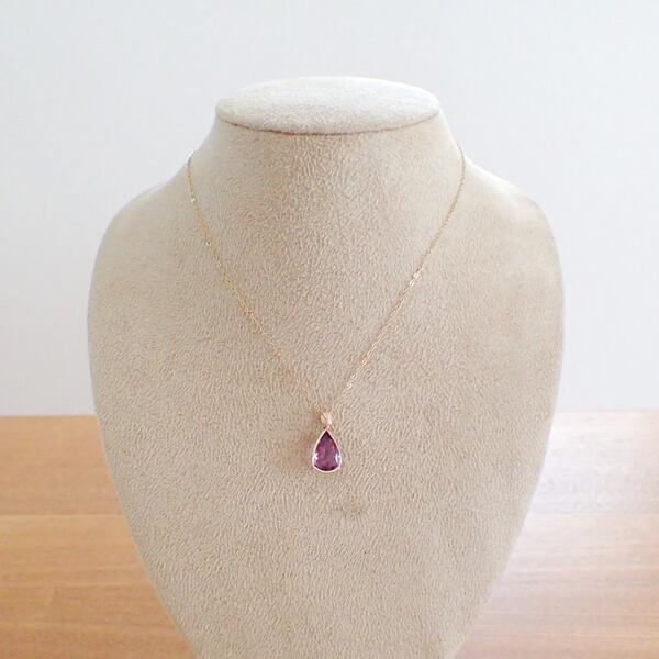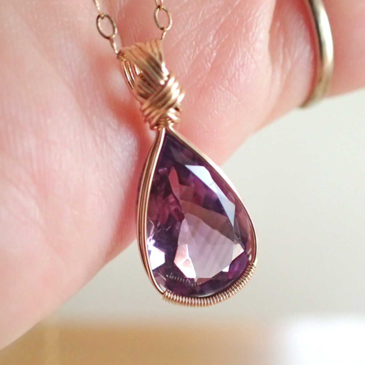 ご覧になってくださり、ありがとうございます。小さなファセットカットのアメジストを〈女神巻き®〉デザインでペンダントトップにしました。カットの美しいドロップ型のアメジストです。可愛らしいサイズですが、厚みもあり、それがこのピースの色、カットを更に魅力あるものにしています。覗き込めば自分の内側が見えてくるかも知れません。静かに内観を深めたい方へ。14金ゴールドフィルドワイヤーを使用しています。(※ネックレスチェーンは別売りです)