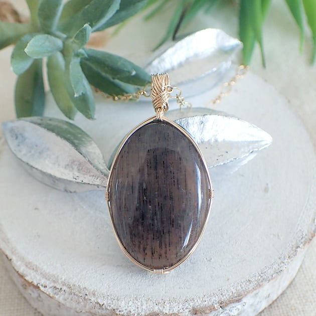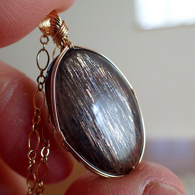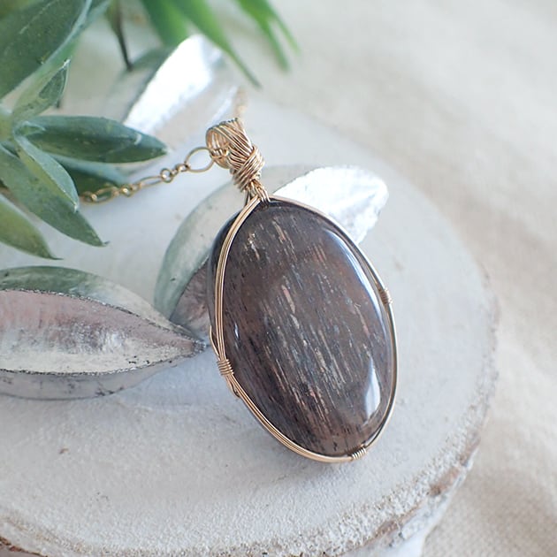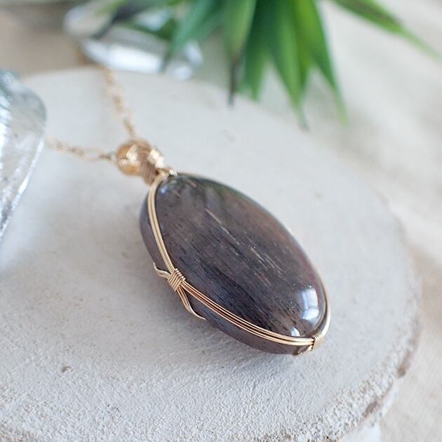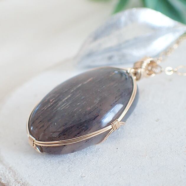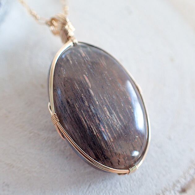〈女神巻き®〉ブラックサンストーンのペンダントトップ