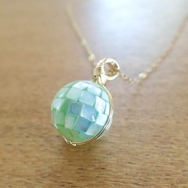 〈女神巻き®〉モザイクシェルのひと粒ビーズペンダントトップ(グリーン)