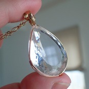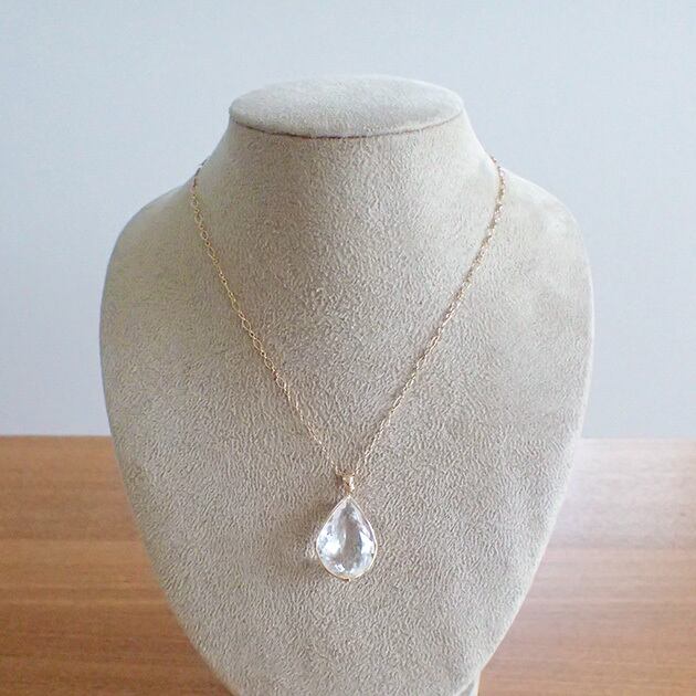 ・ドロップ型ファセットカットに研磨された水晶です。(オモテ面の中央は平たく、裏面は中央に向かってすり鉢状に尖った形に整形されています)