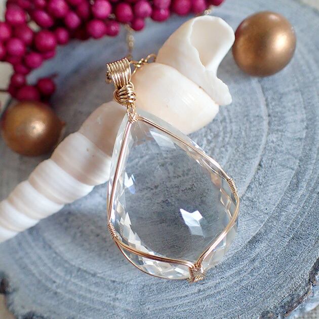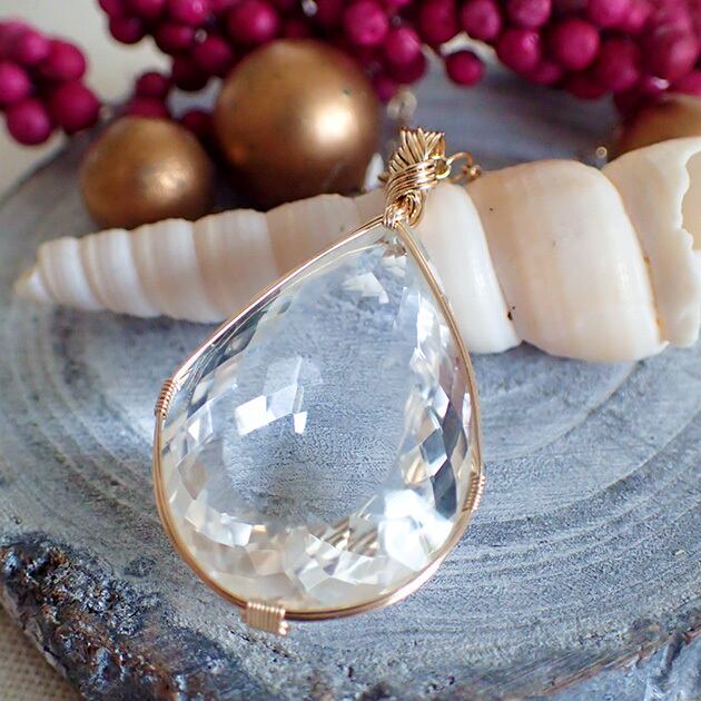 【クリスタルと魂の目覚め】『自分を知る鏡・一番そばで』〈女神巻き®〉ファセットカット大粒水晶のペンダントトップ