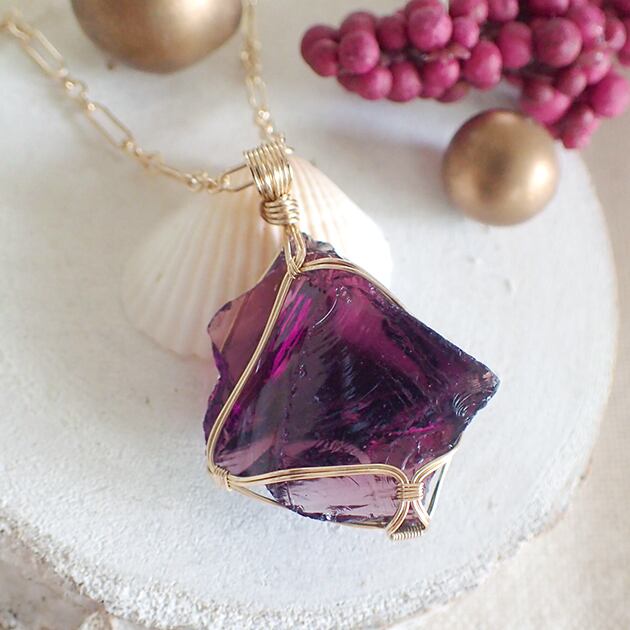 ご覧になってくださり、ありがとうございます。こっくりと深い紫色のアンダラクリスタルを〈女神巻き®〉デザインでペンダントトップにしました。レギュラーサイズのペンダントトップより少し小さめで、初めての方にも身に着けて頂きやすいサイズです。(※実物は画像よりやや赤みが強いです)