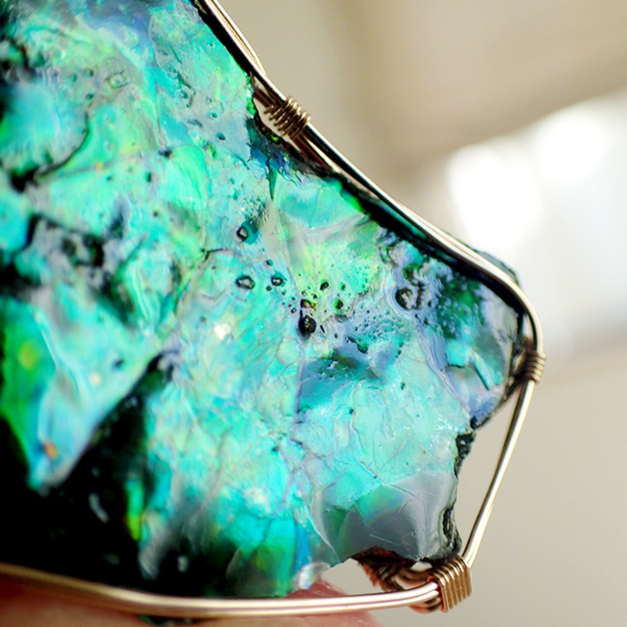 〈女神巻き®〉アンモライト原石のペンダントトップ