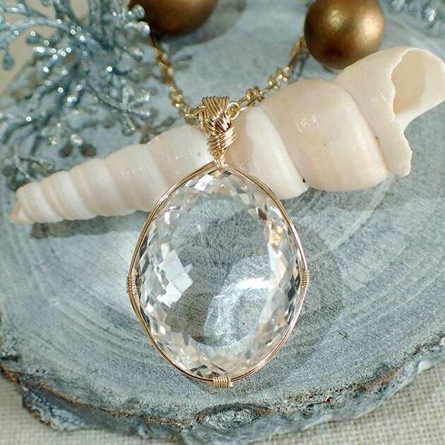 〈女神巻き®〉大粒ファセットカット水晶のペンダントトップ